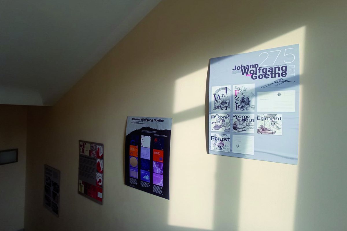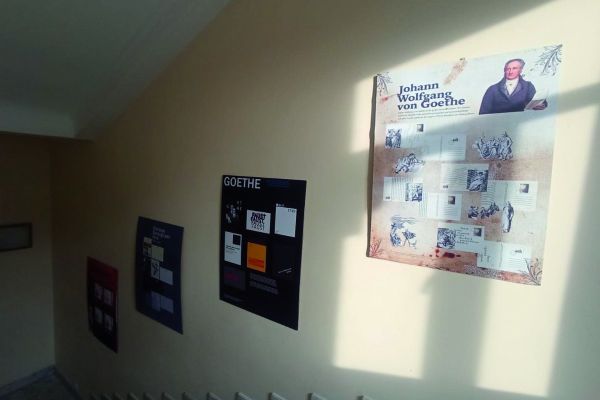 Студенты показали свое визуальное видение таких произведений Гете как «Фауст», «Страдание юного Вертера», «Прометей», «Эгмонт», создавая при этом коллажи и сочетая различные портретные изображения поэта. Подобная множественность – большое достоинство выставки, так как она демонстрирует не только профессиональное мастерство студентов, их заинтересованность творчеством великого немца, но и обозначает творческий поиск молодых художников, которым нередко движет не только восхищение, но и сомнение.