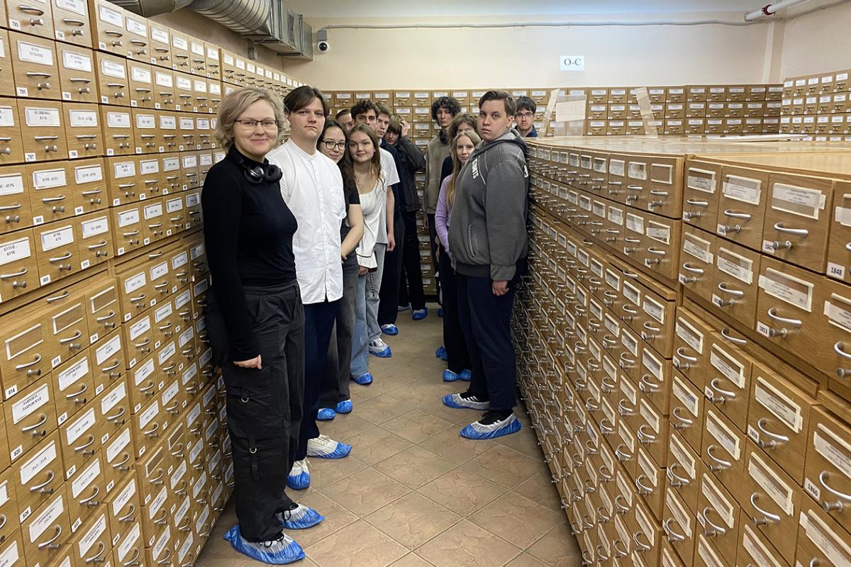 В завершение экскурсии по РГАЛИ студенты побывали в картотеке архива, где попробовали самостоятельно произвести поиск с помощью карточного каталога.
