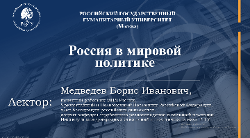 26 ноября, 3 марта и 13 апреля почётный работник МИД России, Чрезвычайный и Полномочный Посланник РФ, член Ассоциации российских дипломатов, доцент кафедры зарубежного регионоведения и внешней политики ИМОиПН РГГУ, к. э. н. Борис Иванович Медведев выступил с онлайн-лекциями для обучающихся Русского культурного центра Узбекистана.