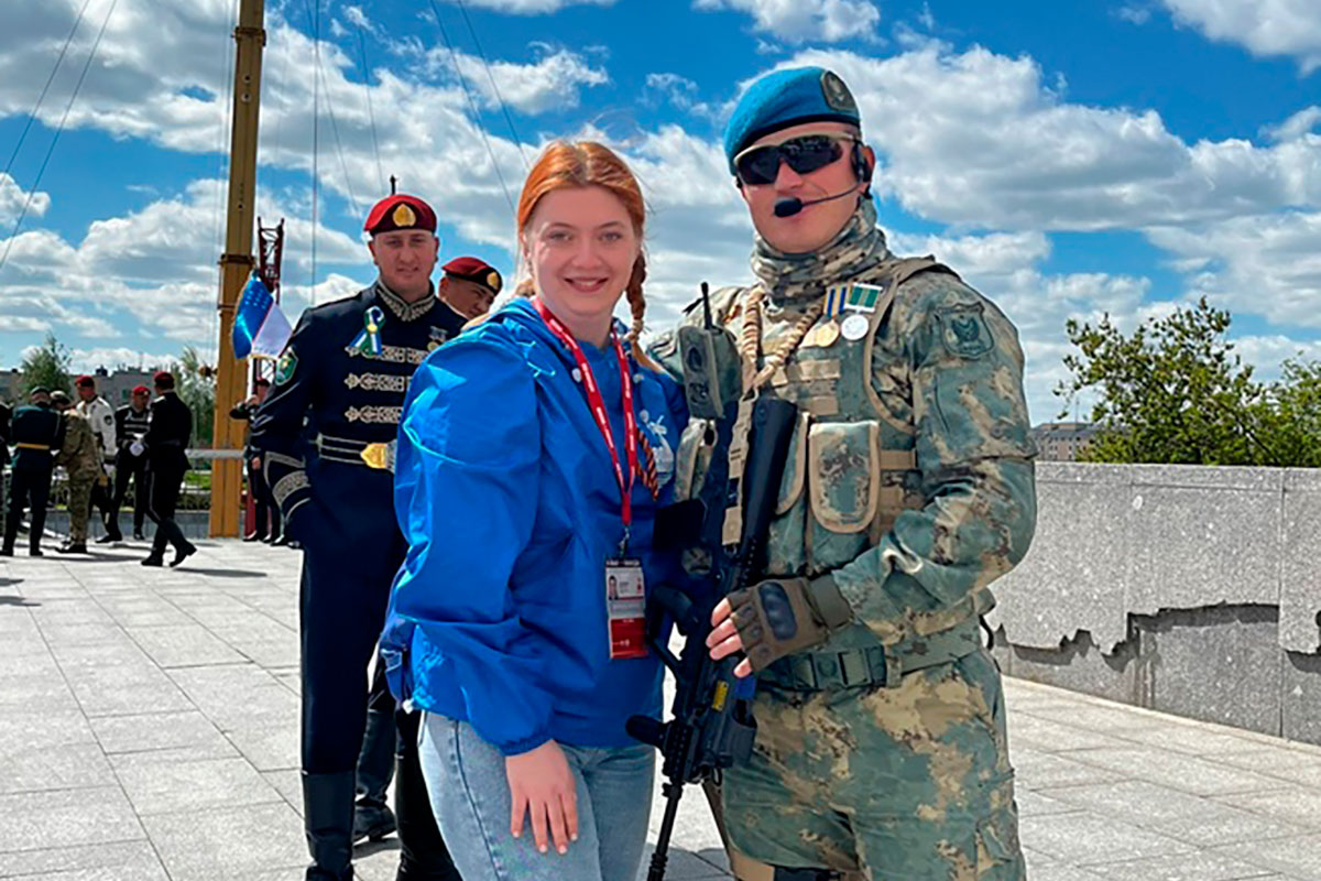 Командир Штаба студенческих отрядов РГГУ, студентка 3-го курса Института международных отношений и политических наук Елизавета Суровцева приняла участие в Параде Победы на Красной площади в составе Международного волонтёрского корпуса 80-летия Победы в Великой Отечественной войне 1941–1945 гг.