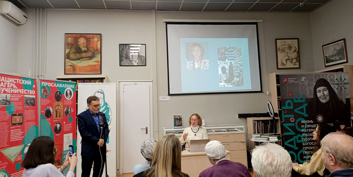 Организатором мероприятия выступил главный библиотекарь, научный сотрудник Библиотеки № 180 имени Н. Ф. Фёдорова, доктор филологических наук Анастасия Гачева представила лектора как ведущего исследователя наследия матери Марии*, автора десятков публикаций.