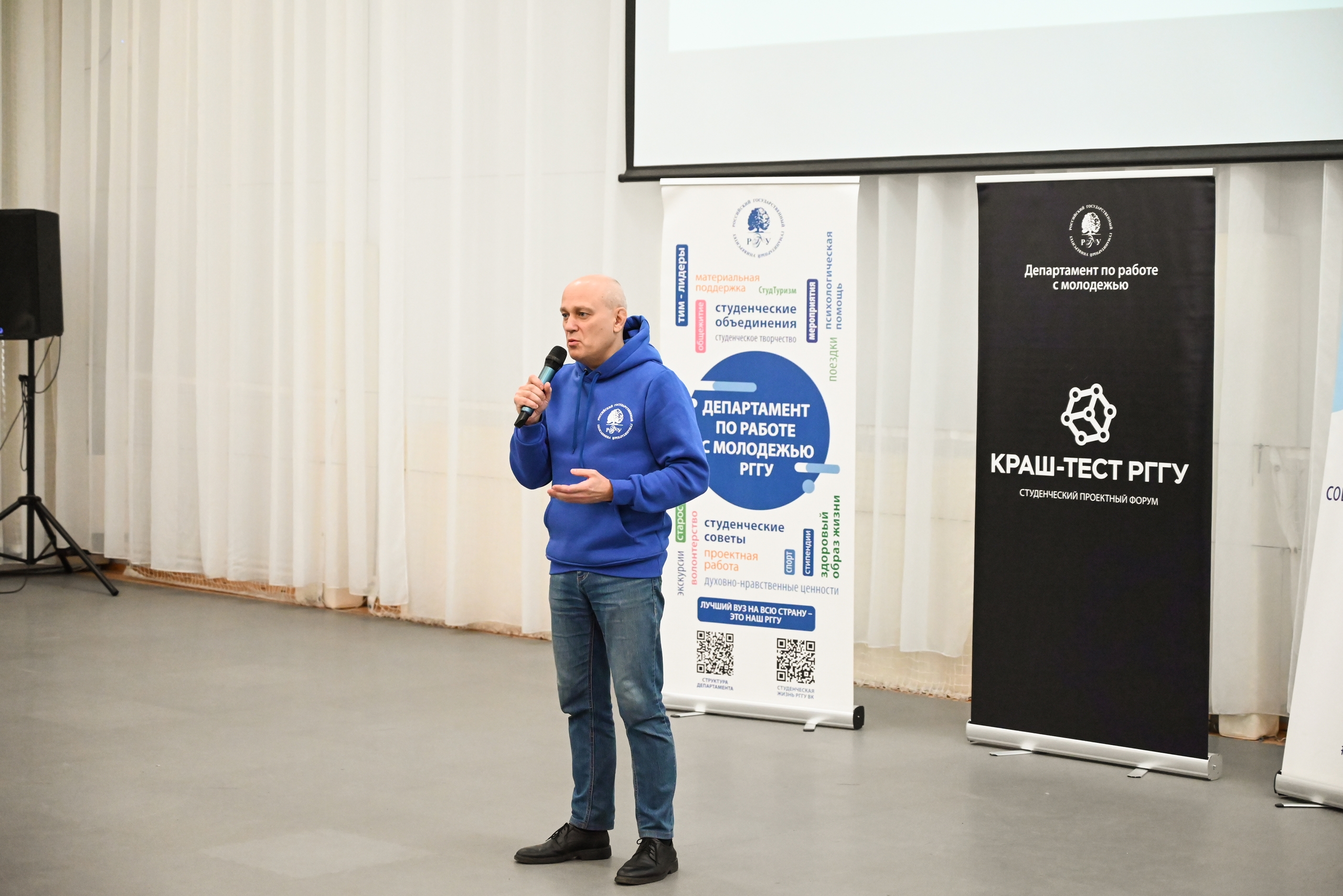 Четвёртый итоговый день — время презентаций проектов шести команд «КРАШ-ТЕСТА РГГУ 2026». В рамках торжественного закрытия форума начальник Управления по воспитательной и организационной работе с обучающимися РГГУ М. Н. Балашов выступил с речью и пожелал участникам дальнейшего успеха в реализации их проектов.