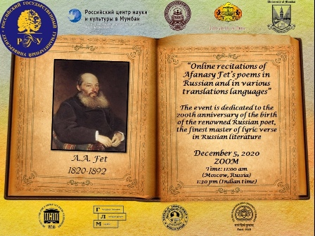 В РГГУ пройдет Международный онлайн поэтический конкурс «Стихи Афанасия Фета на языках мира» Мероприятие посвящено 200-летию со дня рождения величайшего поэта.