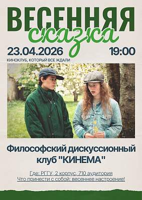 23 апреля в Российском государственном гуманитарном университете состоится кинопоказ и обсуждение французской артхаусной кинокомедии «Весенняя сказка» (фр. Conte de printemps), снятой режиссёром Эриком Ромером в 1990 году. Мероприятие организует философский факультет РГГУ в рамках работы философского дискуссионного клуба «Кинема».