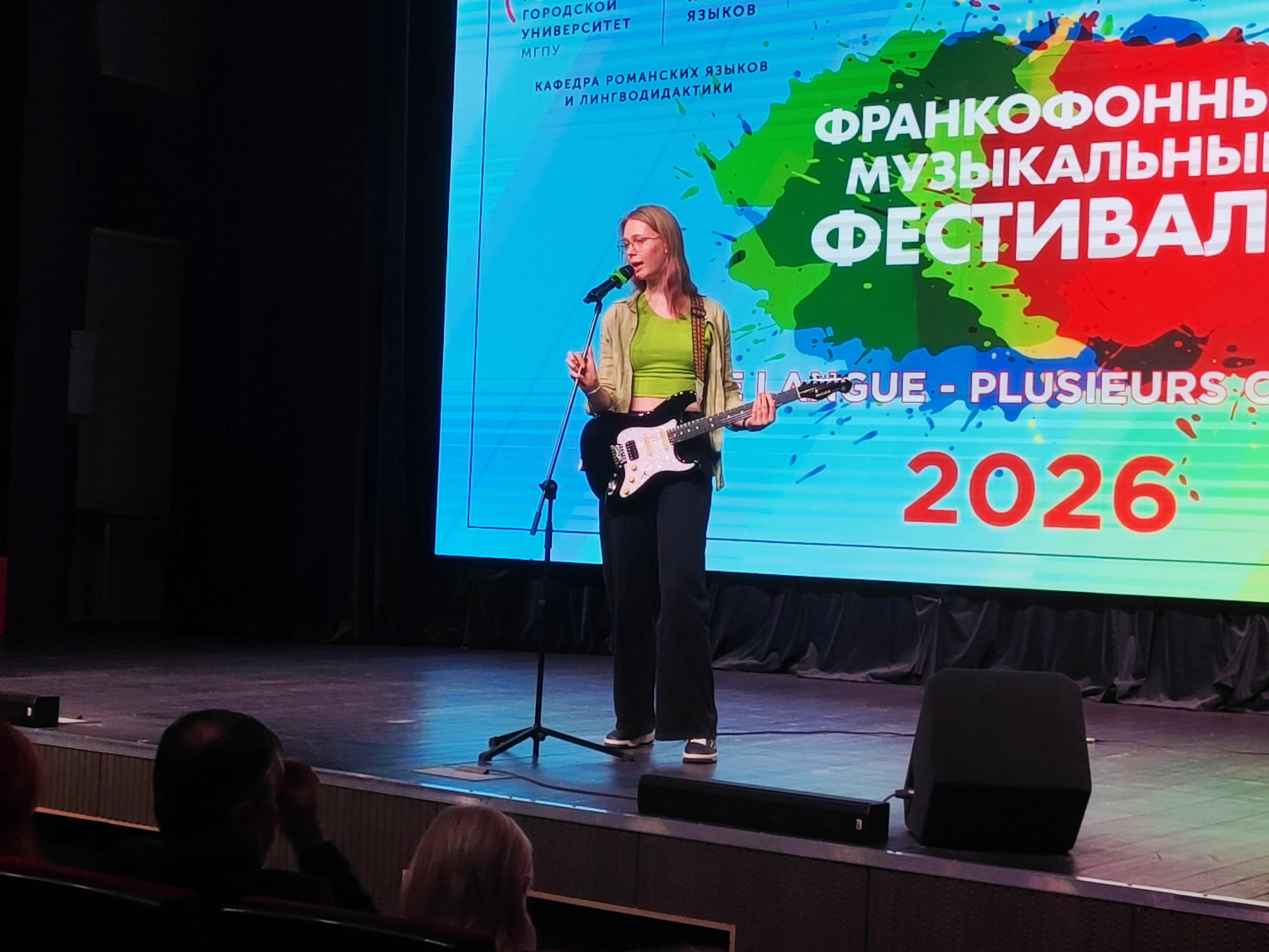 Студентки первого курса ИФИ, изучающие французский язык «с нуля» представили свои музыкальные номера: Касаткина Анастасия песню «Je m'appelle Hélène» (Hélène Rollès) и Ипполитова Антонина в сопровождении электронной гитары «Le temps des cathédrales» (Bruno Pelletier).