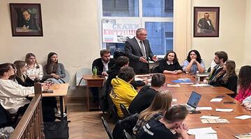 На мероприятии присутствовали студенты 2 курса, обучающиеся по направлению «Юриспруденция» очной системы обучения (32 чел.). Встреча была организована сотрудниками кафедры конституционного и международного права юридического факультета ИЭУП.