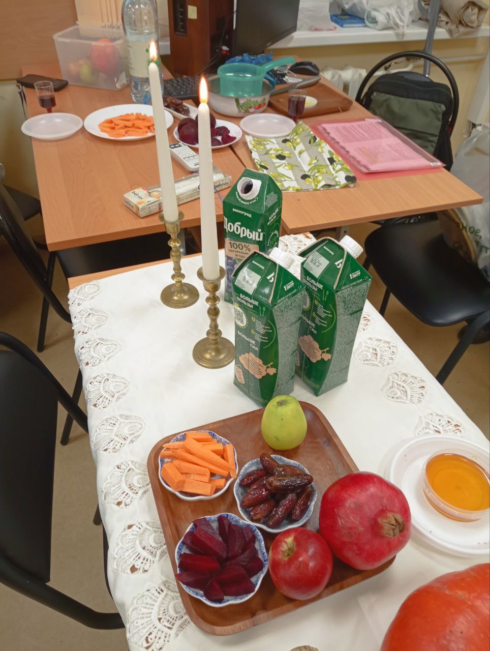 Закончился вечер угощением из тех самых традиционных праздничных продуктов и виноградного сока.