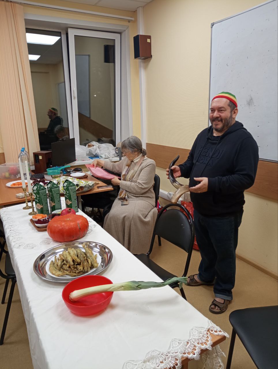 Старший преподаватель КТИБИ Леонид Матвеевич Дрейер рассказал ребятам о том, почему в это день на столе гранат, рыба, мед, яблоки, свекла, морковь, финки, лук-порей и о чем вообще этот праздник. Он же научил студентов сигнальной системе шофара. Как и в прошлом году, он прозвучал на кафедре для новых студентов, начинающих свой первый учебный год.