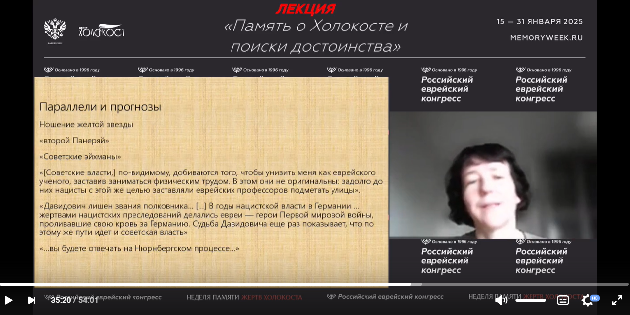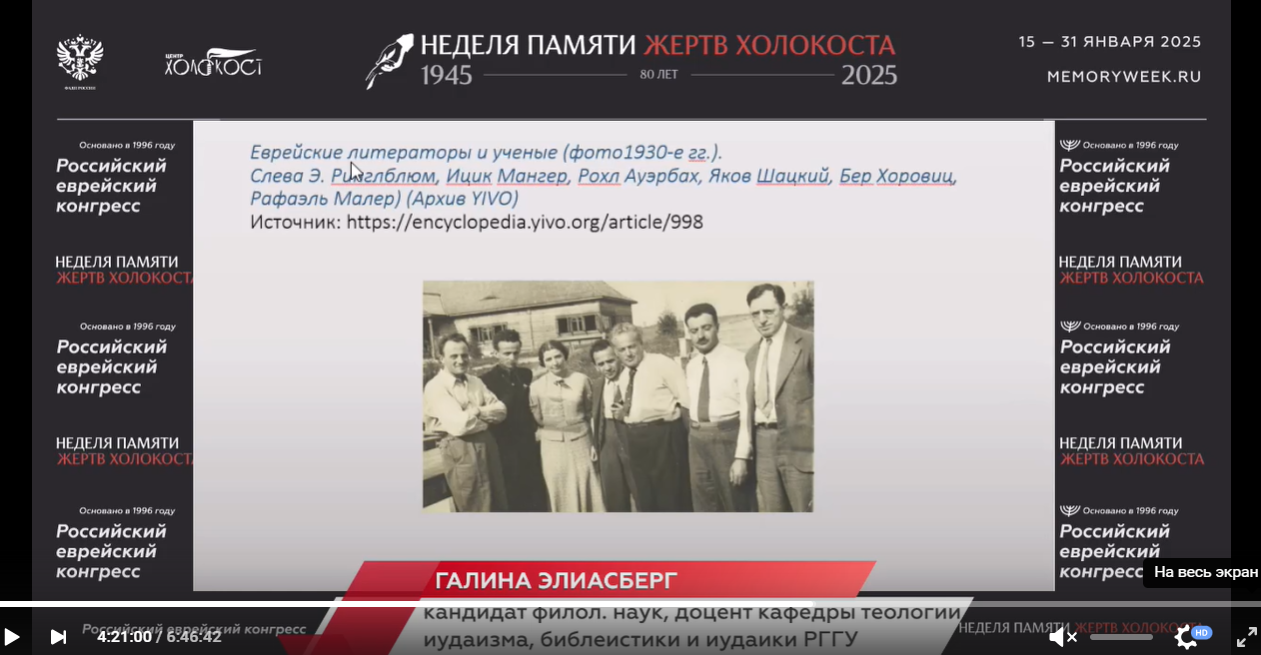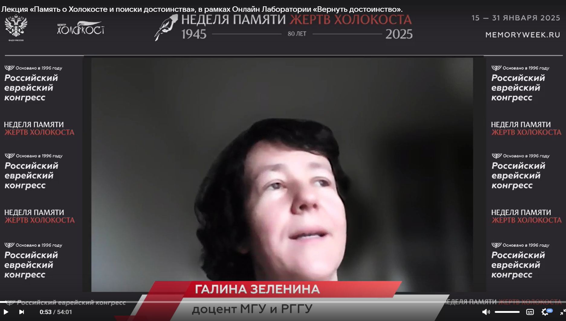 25 и 26 января доценты кафедры иудаики Галина Аркадьевна Элиасберг и Галина Светлояровна Зеленина прочитали лекции на онлайн-лаборатории «Вернуть достоинство», организуемой Российским еврейским конгрессом в рамках Недели памяти жертв Холокоста.