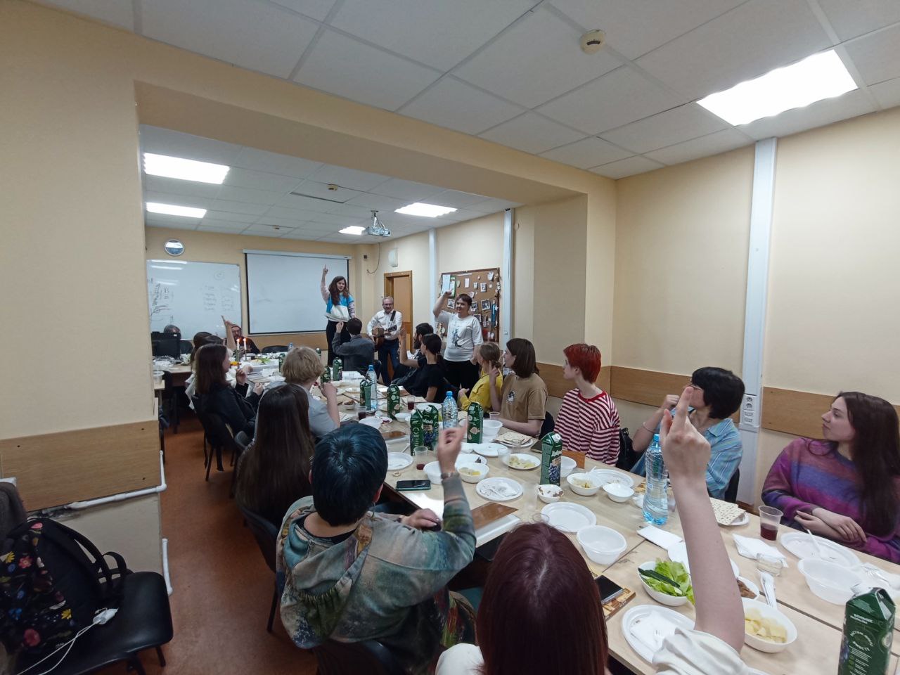 Во время седера читается книга Агада шель Песах («Пасхальное сказание»), в которой описывается ритуал праздника. Многие фрагменты Агады стали традиционными песнопениями. В еврейских общинах разных стран есть множество вариантов их исполнения. В этот раз весьма важную музыкальную часть праздника замечательно провел кантор общины прогрессивного иудаизма «Ле-Дор ва-Дор» и студент кафедры Дмитрий Карпенко. Руководил мероприятием старший преподаватель кафедры Леонид Матвеевич Дрейер.