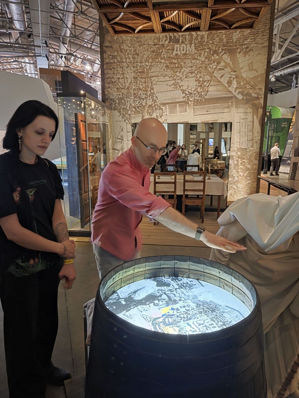 Главная особенность музея — его абсолютная интерактивность. Здесь история переживается через прикосновение. Мы могли трогать экспонаты, взаимодействовать с ними, становясь не зрителями, а участниками событий. Мы листали оцифрованные архивные документы, письма, указы, смотрели фотографии. Особый интерес вызвали «говорящие» экспонаты: достаточно было поднести ладонь к сенсорной панели, и артефакт начинал свою историю.