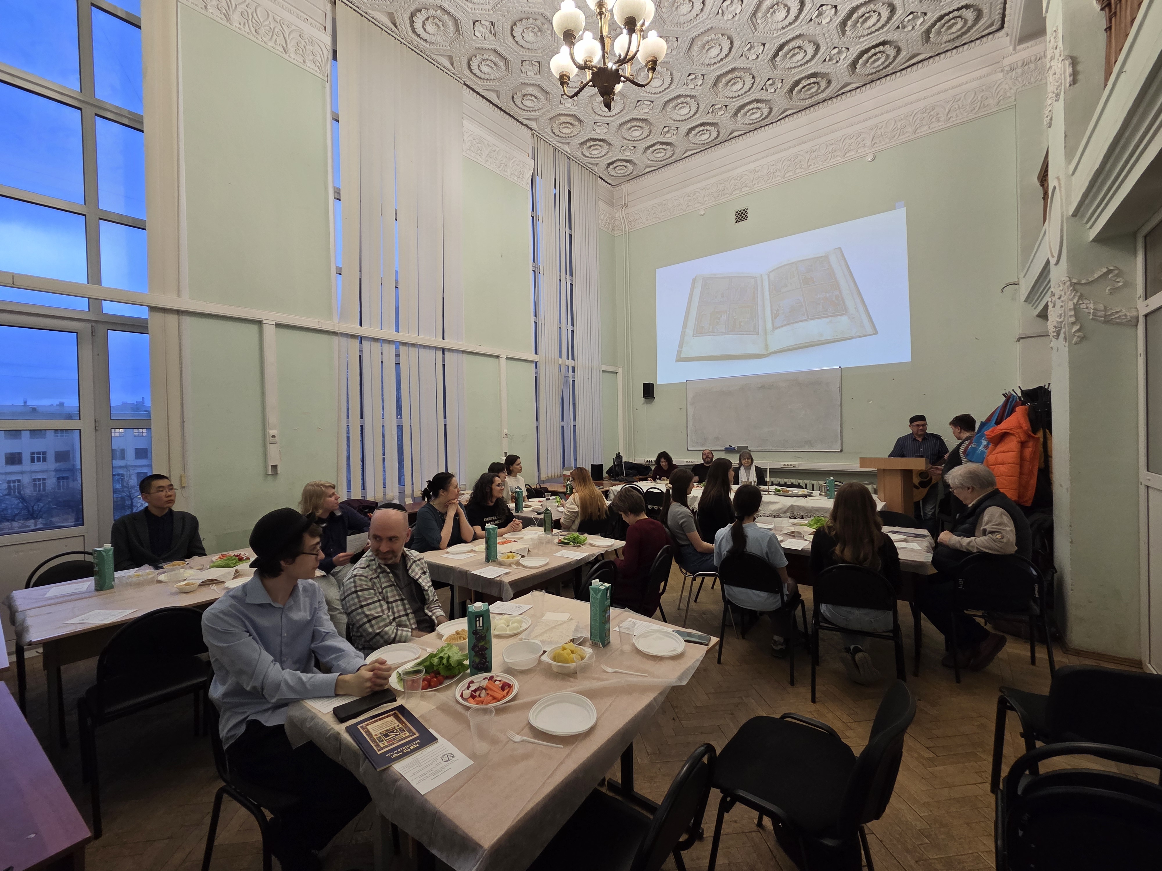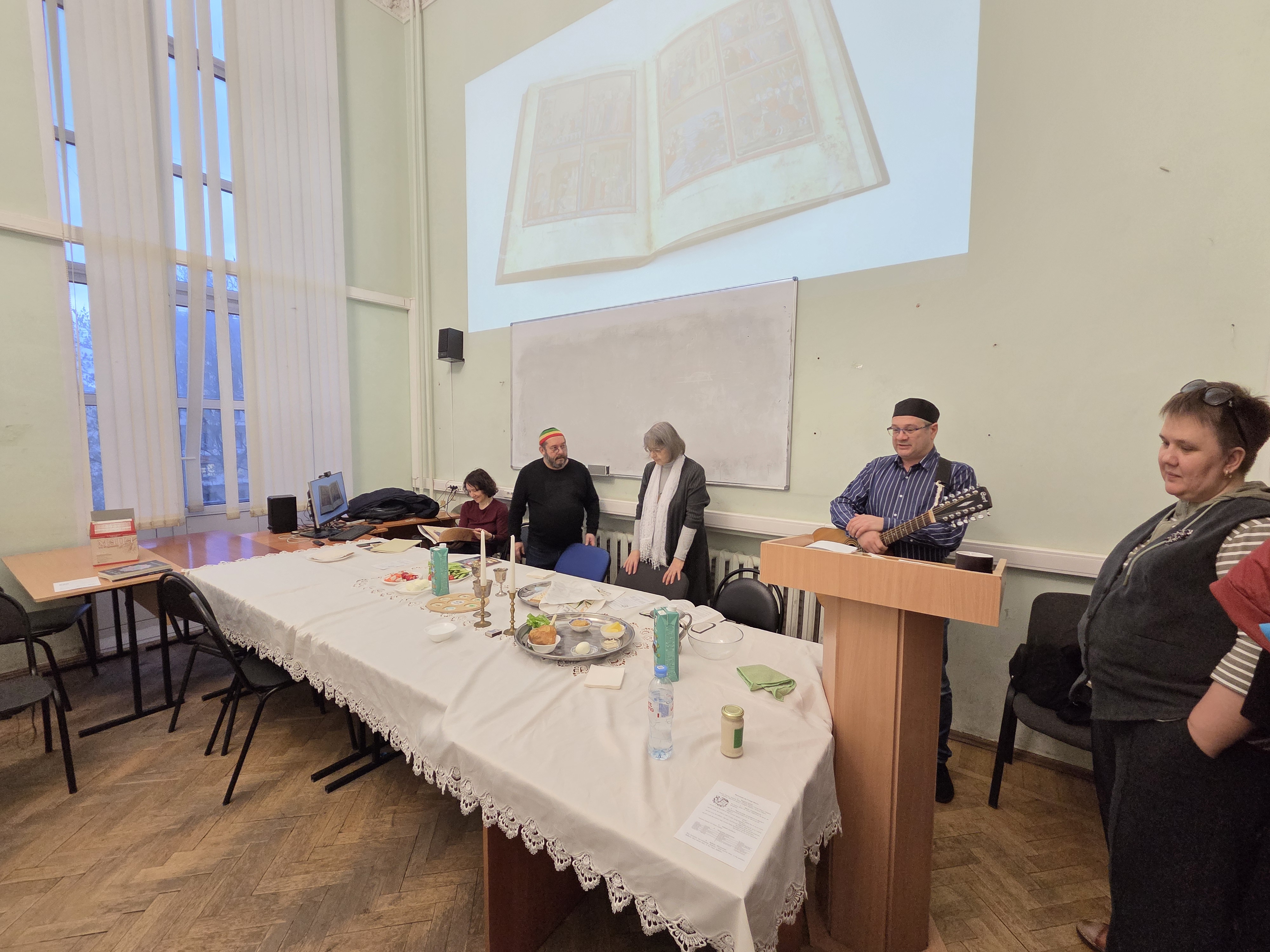 09.04.2026 6 апреля с. г., во время иудейской пасхальной недели, преподаватели кафедры теологии иудаизма, библеистики и иудаики организовали для студентов Института истории религии и духовной культуры седер, точнее, «модель» седера, традиционной трапезы, которую проводят в первый вечер (а в диаспоре также во второй) праздника Песах, отмечаемого в память исхода евреев из Египта. Праздник знаменует окончание рабства в Египте и обретение свободы.