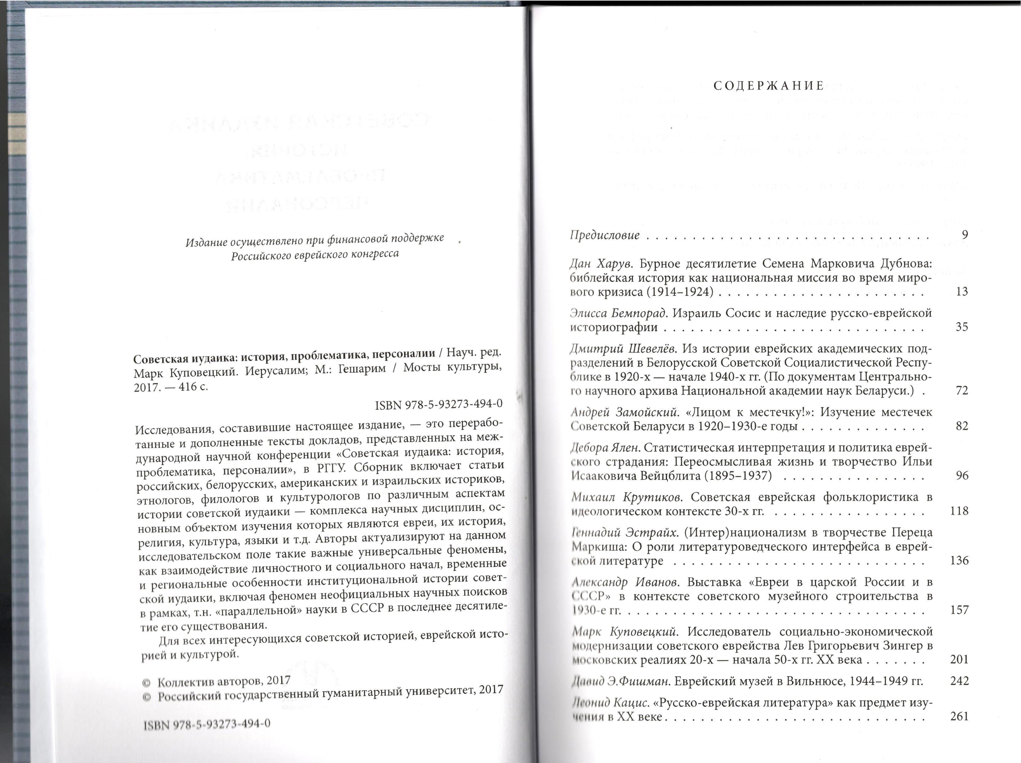 Включает новейшие исследования, а также публикацию архивных источников и мемуаров, посвященных различным аспектам становления, развития, затухания и возрождения в СССР иудаики – комплекса научных дисциплин, объектом изучения которых являются евреи, их история, религия, культура, языки, демография и т.д. в прошлом и настоящем. В сборнике приняли участие как ведущие современные российские, белорусские, американские и израильские исследователи истории и культуры советского еврейства, так и непосредственные участники возрождения иудаики как «параллельной науки» в СССР в 80-х гг. прошлого века. Некоторые из них в настоящее время являются известными специалистами по иудаике или, например, культурной антропологии.