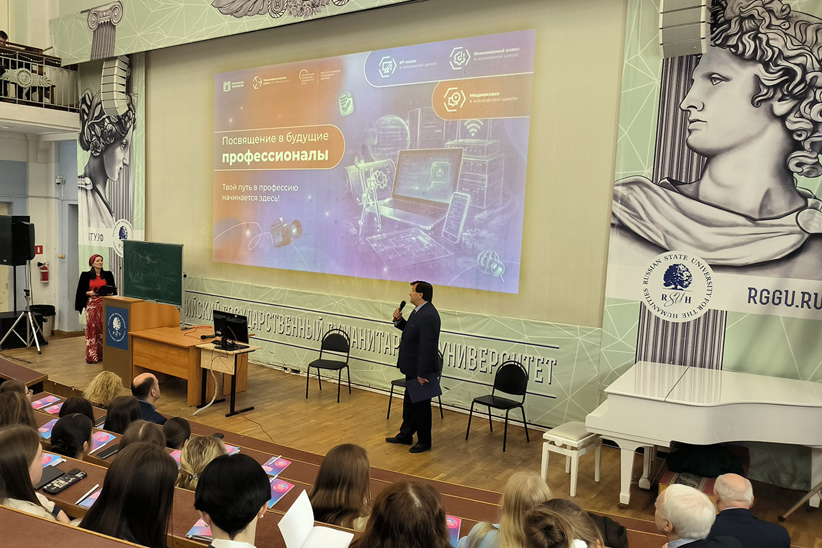 8 февраля. «Посвящение в профессионалы» для учащихся медиаклассов г. Москвы. 8 февраля — День российской науки — один из важнейших праздников для системы московского образования. Именно в школе у человека закладываются основы научного мышления, формируются первые исследовательские навыки. Особенно актуально это для школьников медиаклассов, поскольку работа над проектами под руководством преподавателей и сотрудников вуза — одна из ключевых составляющих формирования креативного информационного пространства нашей страны. Благодаря партнёрству МИНОТ РГГУ со школами учащиеся уже сегодня вносят вклад в развитие столицы и страны, а после выпуска смогут стать полноправными участниками научного, профессионального и медийного сообществ. Поэтому очень важно посвятить ребят в будущие профессионалы именно на площадках ведущих университетов Москвы. 8 февраля 2025 г. в РГГУ, в ходе посвящения учащихся медиаклассов в профессионалы, со школьниками встретились директор МИНОТ С.В. Кувшинов, координатор проекта «Медиакласс» в РГГУ, депутат Тверского района г. Москвы, доцент РГГУ А.К. Межиева, Президент гильдии кинотехников и киномехаников Союза кинематографистов РФ О.Н. Раев, политтехнолог и редактор телеканала ТНТ Н.А. Гарцев. После окончания торжественной встречи, в рамках которой спикеры провели со школьниками беседы на различные темы, учащиеся были приглашены на цикл интерактивных мероприятий «Мой выбор — креативные медиатехнологии». Ведущие специалисты университета провели для участников квесты и экскурсии по музейным пространствам вуза, а также организовали круглый стол на тему выбора медиапрофессии. Все присутствовавшие получили раздаточные материалы от Департамента образования и науки Москвы и памятные сувениры от РГГУ. Дружескую атмосферу помогали поддерживать волонтёры — учащиеся Предуниверсария РГГУ.
