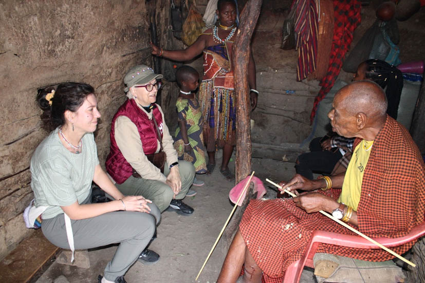 М.Л. Бутовская и Д.А. Дронова. Встреча со старыми друзьями Гидобатом и его семейством. Пос. Горофани. Танзания. 31.07.2023. Фото Р.О.Бутовского