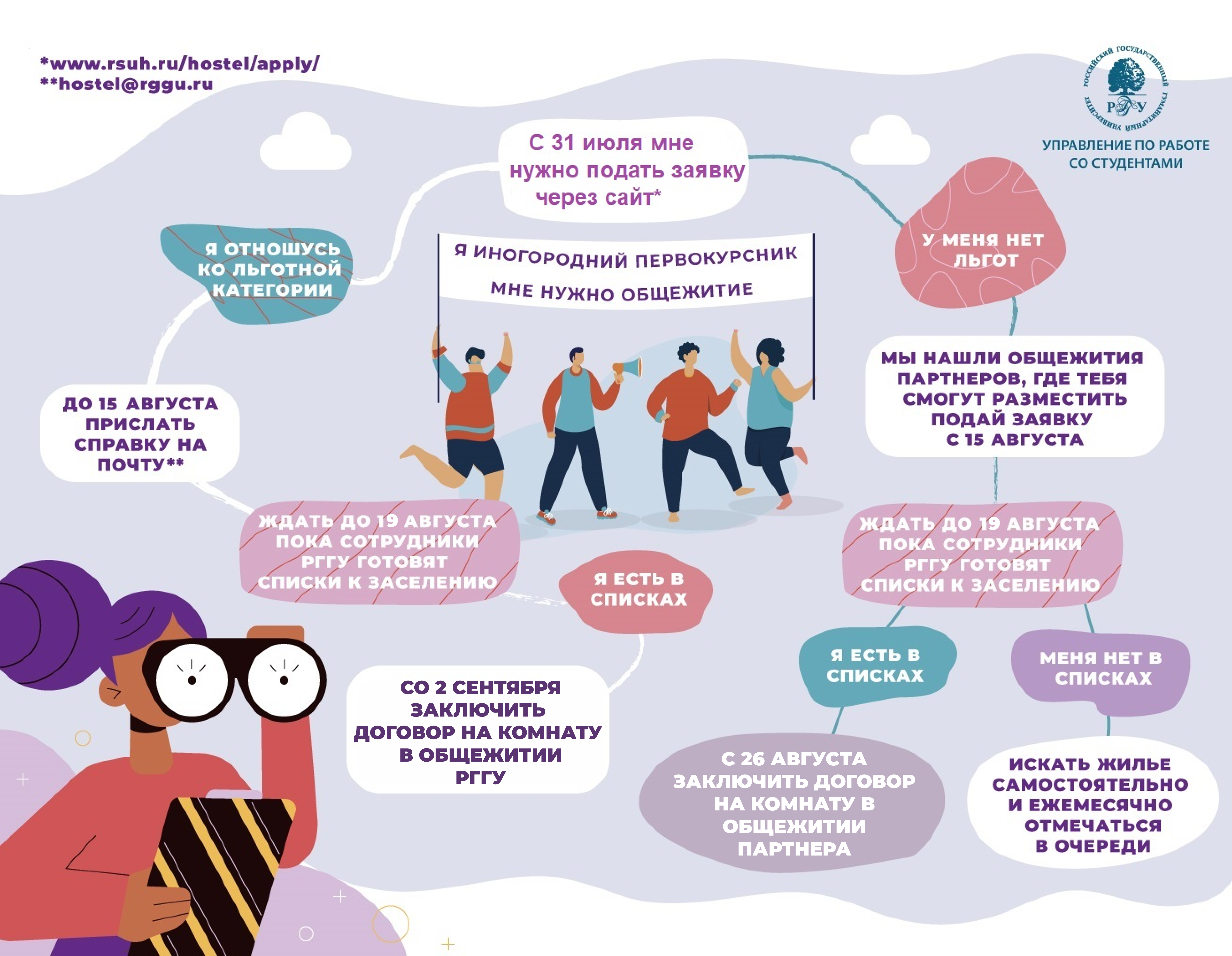 Перед тем, как подать заявку, внимательно ознакомьтесь с Порядком распределения мест в общежитии РГГУ.