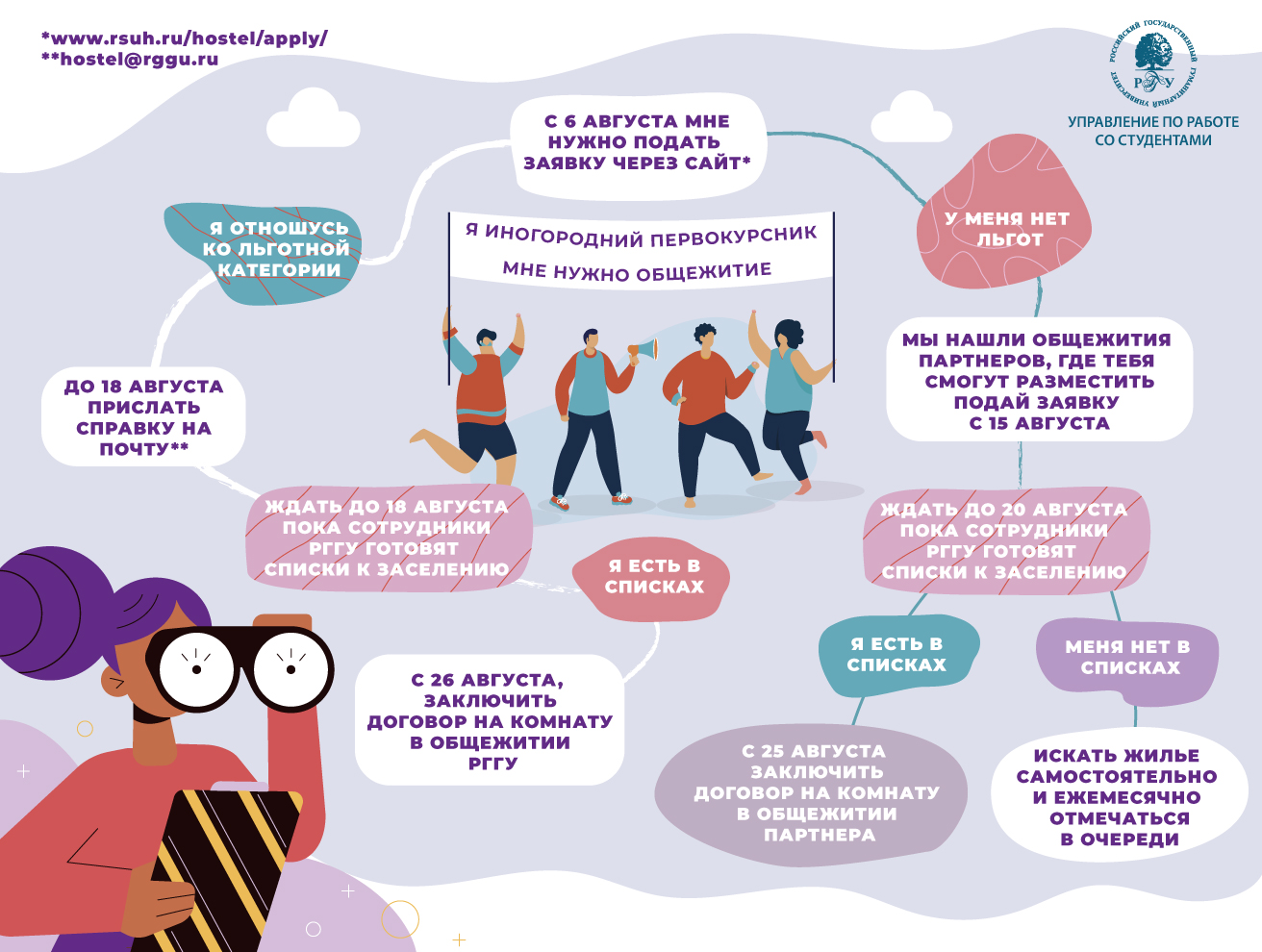 Перед тем, как подать заявку, внимательно ознакомьтесь с Порядком распределения мест в общежитии РГГУ.