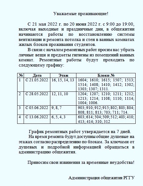 FAQ: проживание в общежитии