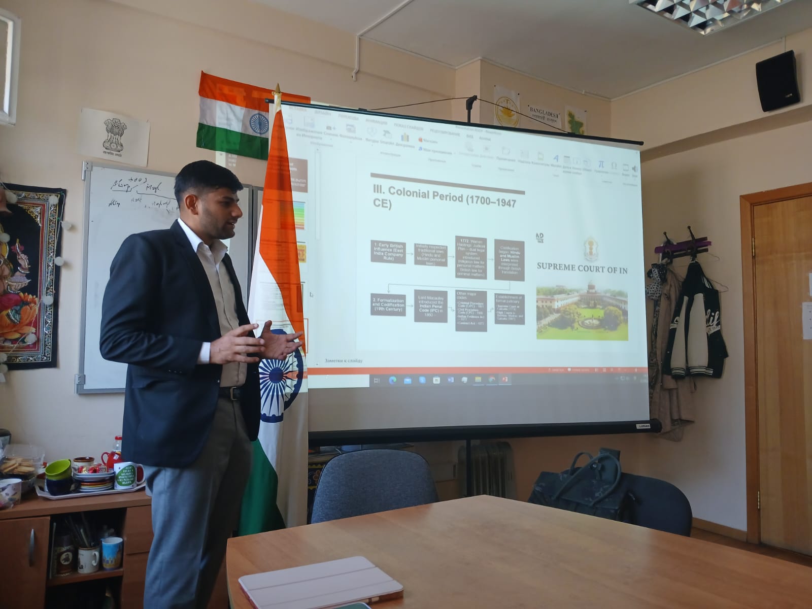 Mr. Mirza gave a presentation in which he showed Russian students the stages of the development of jurisprudence in India, starting with the law of Ancient India, then the law of the Delhi Sultanate, the Mughal Empire, the British administration and independent India.