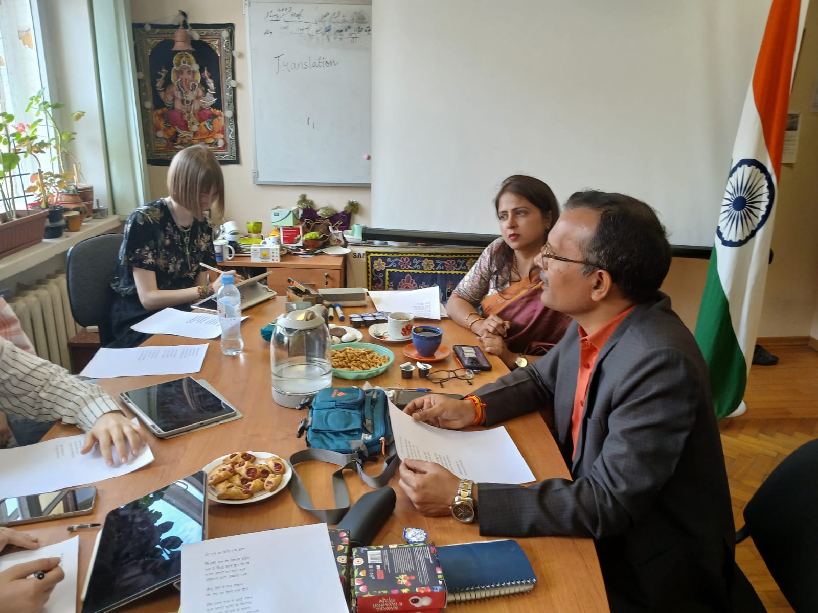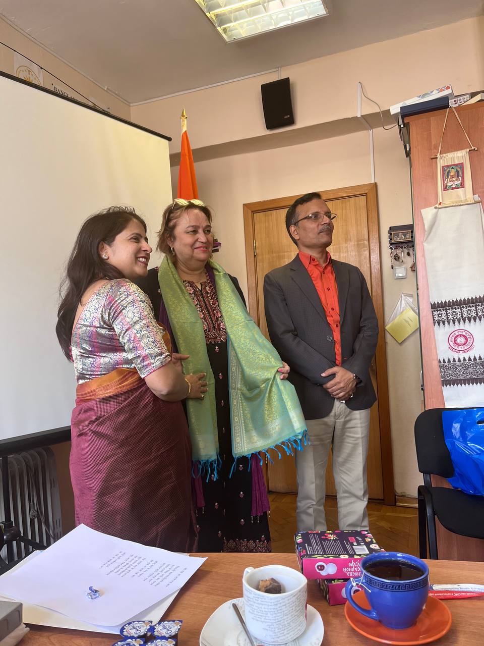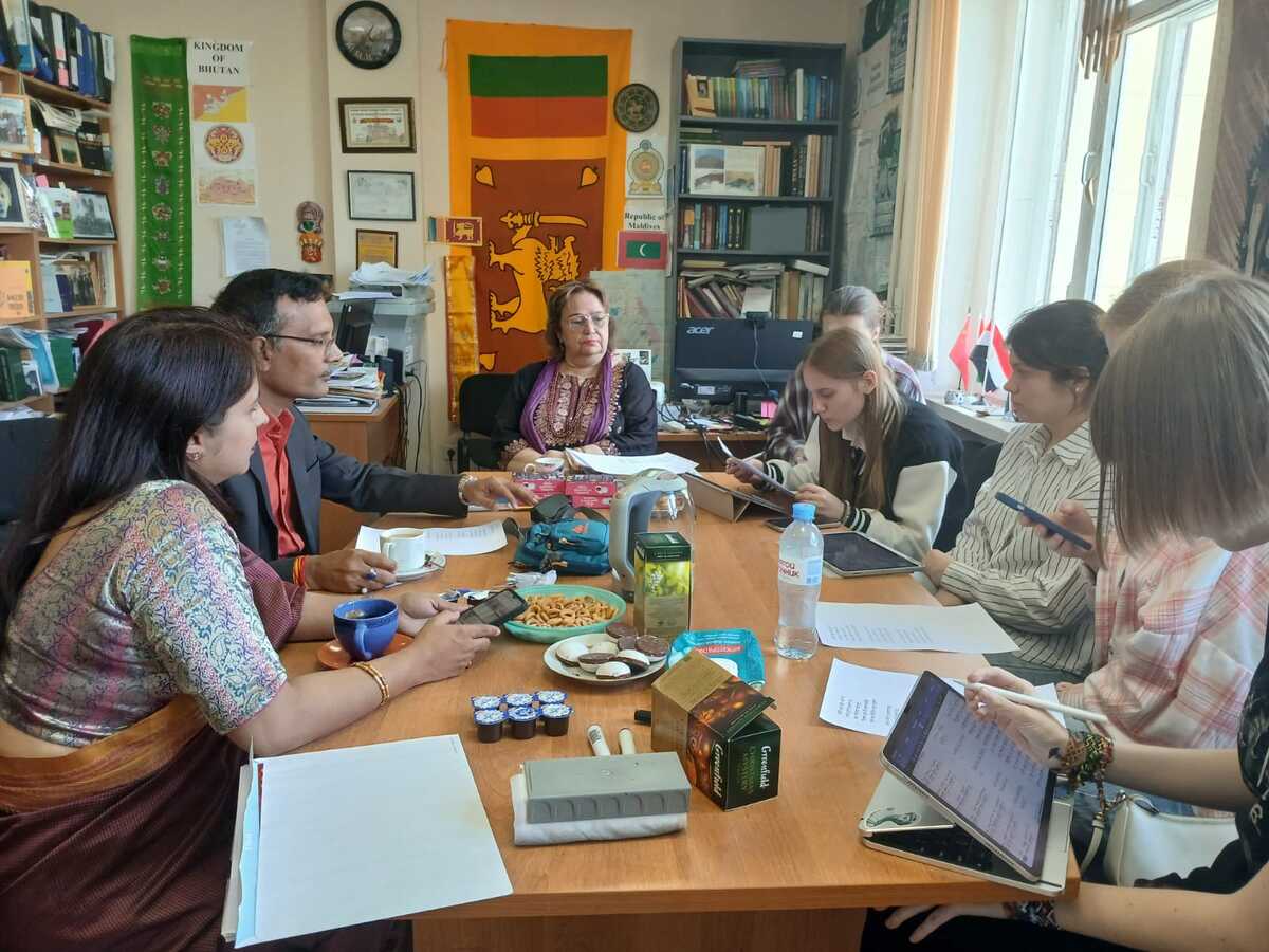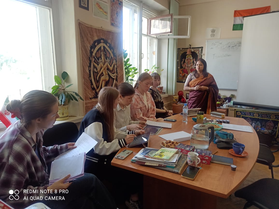 Having met with Russian students studying Hindi at the Institute of Linguistics, Dr. Neeraj Dhankhar spoke about the interest in the Russian language among Indian students and her experience of translating works of contemporary Russian writers from Russian into Hindi.