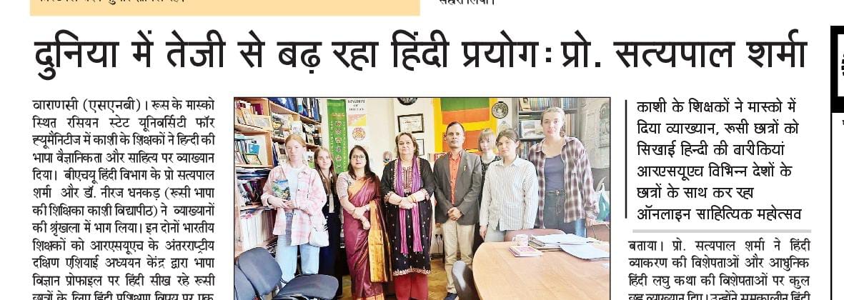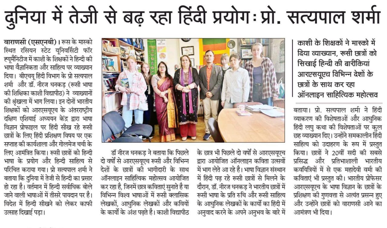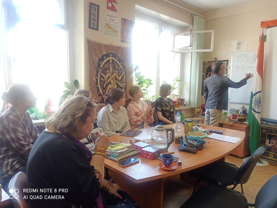 On 2-7 June 2025 RSUH Hindi group students attended a course of lectures delivered by Prof. Satya Pal Sharma, Hindi teacher from the Banaras Hindu University and Dr. Neeraj Dhankhar, teacher of Russian from Mahatma Gandhi Kashi Vidyapeeth University who were invited by the International Centre for South Asian studies of the RSUH for weekly workshop and round-table discussion on Hindi Training for Russian students who are learning Hindi language on the “Linguistics” profile.