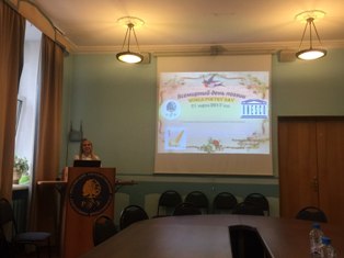 Mariia Shcheglova, 2 year student presented her project about holding the World Poetry Day (UNESCO) on the 21th of March 2017 at RSUH. This project was presented in the frame of nomination "Cultural event at RSUH".