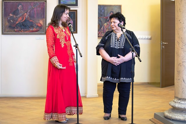 Following the official part of the event, a tour of the exhibition took place. Shanti Kushwaha led visitors through the exhibition, explaining the creation of oil and watercolor paintings.