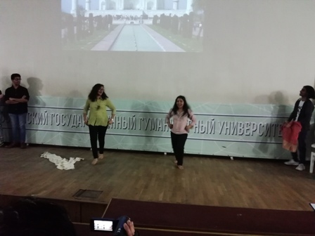 Daljit Singh, Rishabh Sharma and Inderjit Singh sang a Hindi song Akkar Bakkar Bombey ho! Indian girls presented a fun modern Indian dance. All Russian students welcomed Indian students, clapped loudly and emotionally supported them!