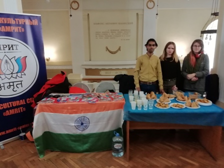 The organizers of Indian cuisine were: AMRIT - Indian cultural center (Tarusa city) and "Devi Café" - Indian restaurant. Russian students tasted Indian pies "pakora" and "samosa".