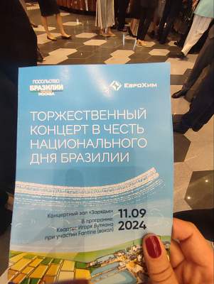 7 сентября – День Независимости Бразилии. В этот день в 1822 году первый Бразильский император Педро I провозгласил Бразилию свободной от колониального владычества Португалии. 11 сентября в честь Бразильского национального праздника Дня Независимости Посольство Бразилии в Москве провело торжественное мероприятие в «Зарядье», одном из наиболее престижных концертных залов России, куда были приглашены представители МИДа России и посольств других стран в Москве, бразильского и российского бизнеса, а также университеты, тесно сотрудничающие с Бразилией: РГГУ, МГИМО, МГУ, МГЛУ. Личные приглашения получили: проректор по научной работе Павленко О.В., и.о. проректора по международному сотрудничеству Заботкина В.И., завкафедрой регионоведения Журавлева В.И., директор Международного Российсо-Бразильского центра РГГУ Батурина Л.И, и студенты РГГУ, проходившие практику в Российско-Бразильском центре в 2024 году.