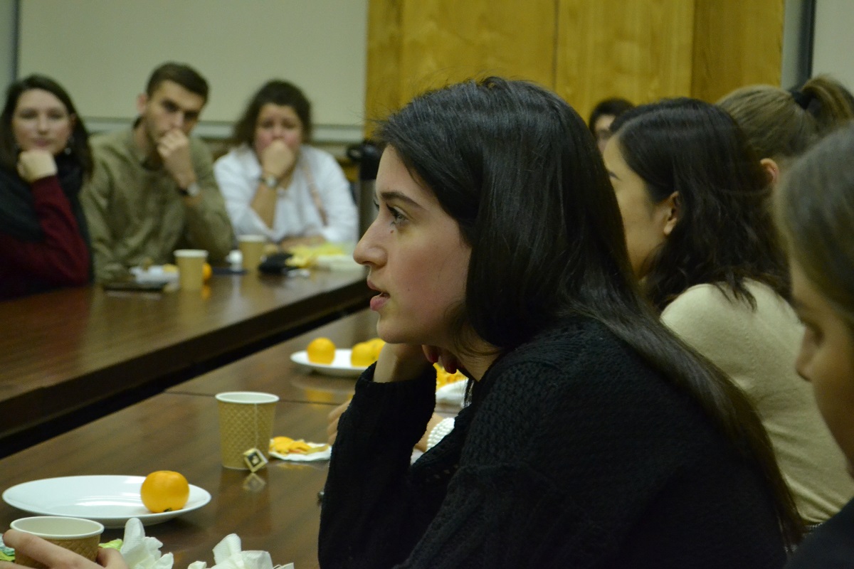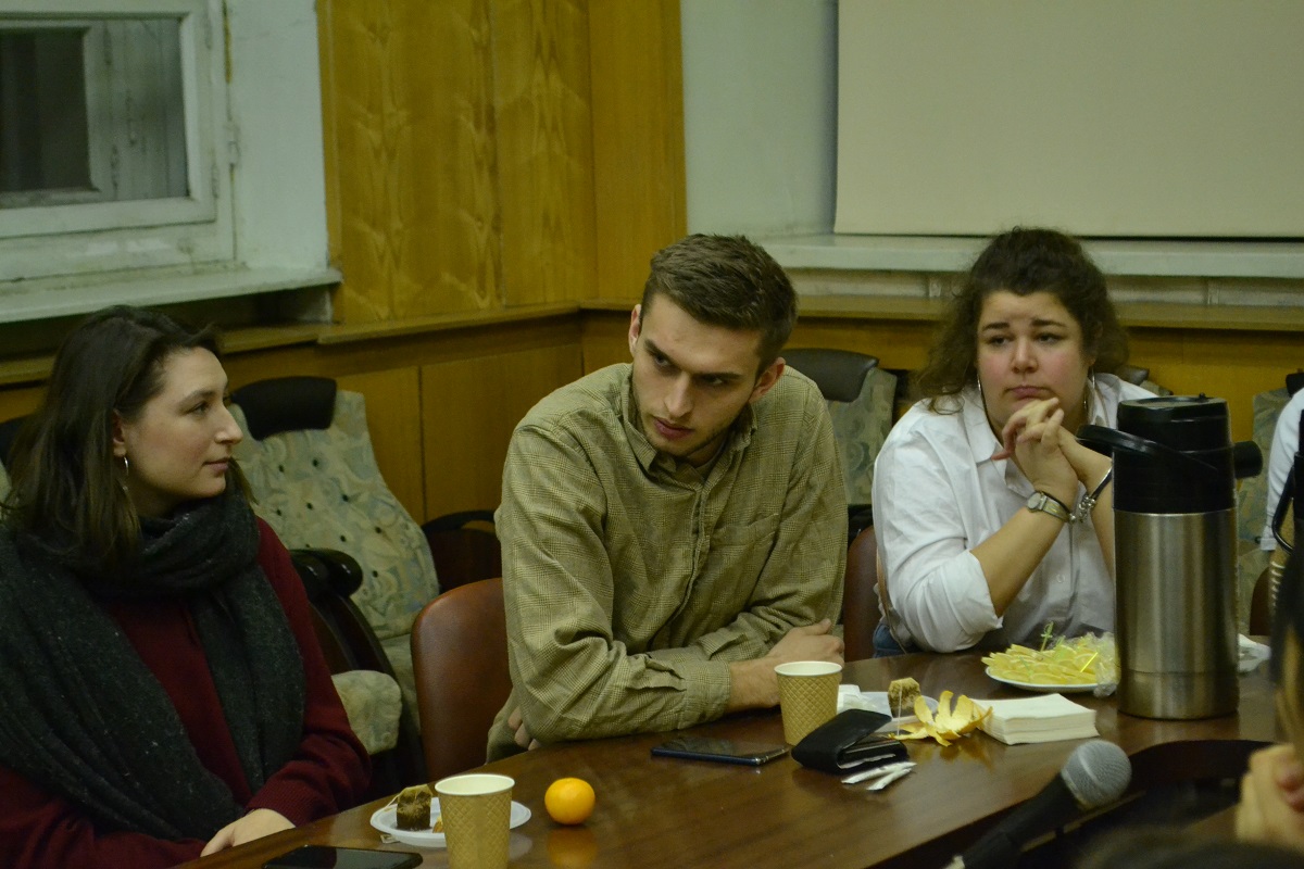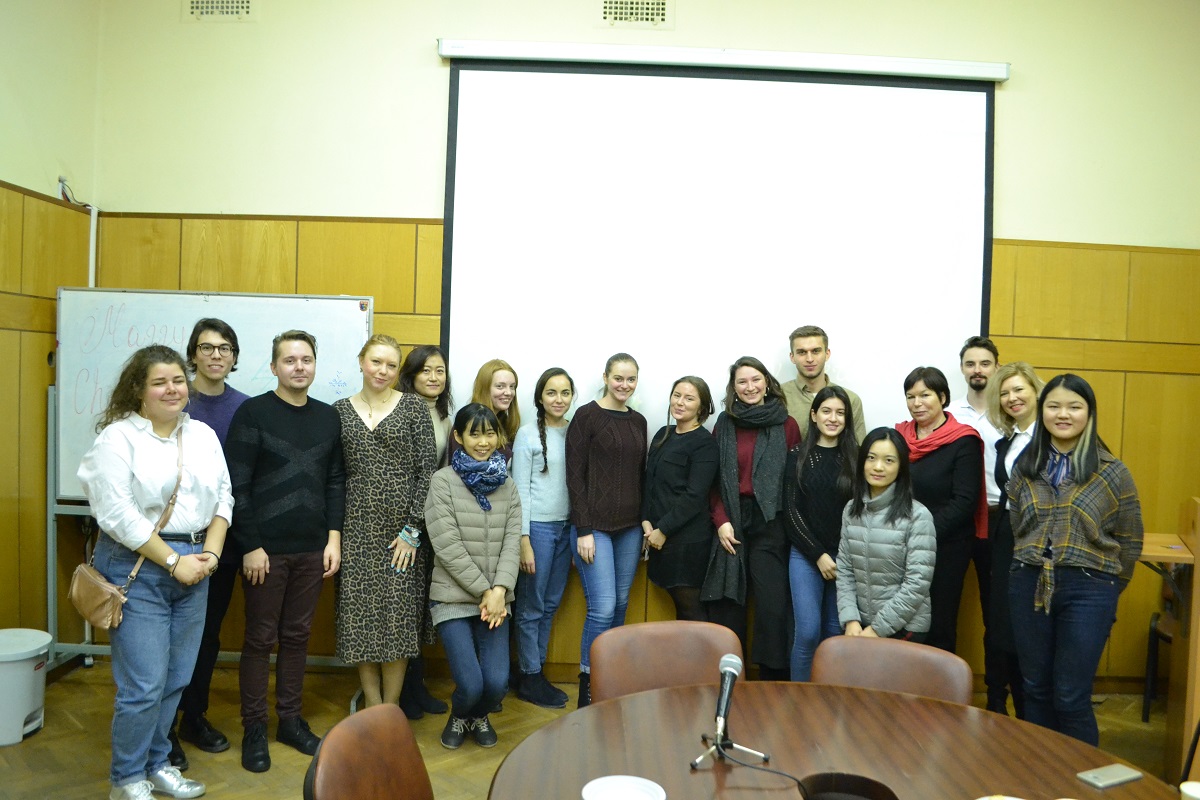 После экскурсии студентам была организована встреча и чаепитие с проректором по международному сотрудничеству Верой Ивановной Заботкиной и сотрудниками Управления международных связей. В ходе беседы проректор поинтересовалась о приобретенном опыте учебы и пребывания иностранных студентов в РГГУ, а также от имени руководства университета поздравила их с наступающим Рождеством и Новым годом.