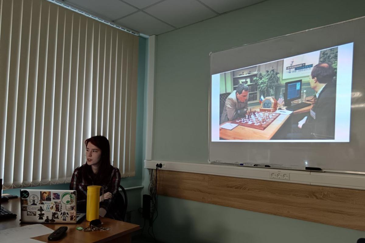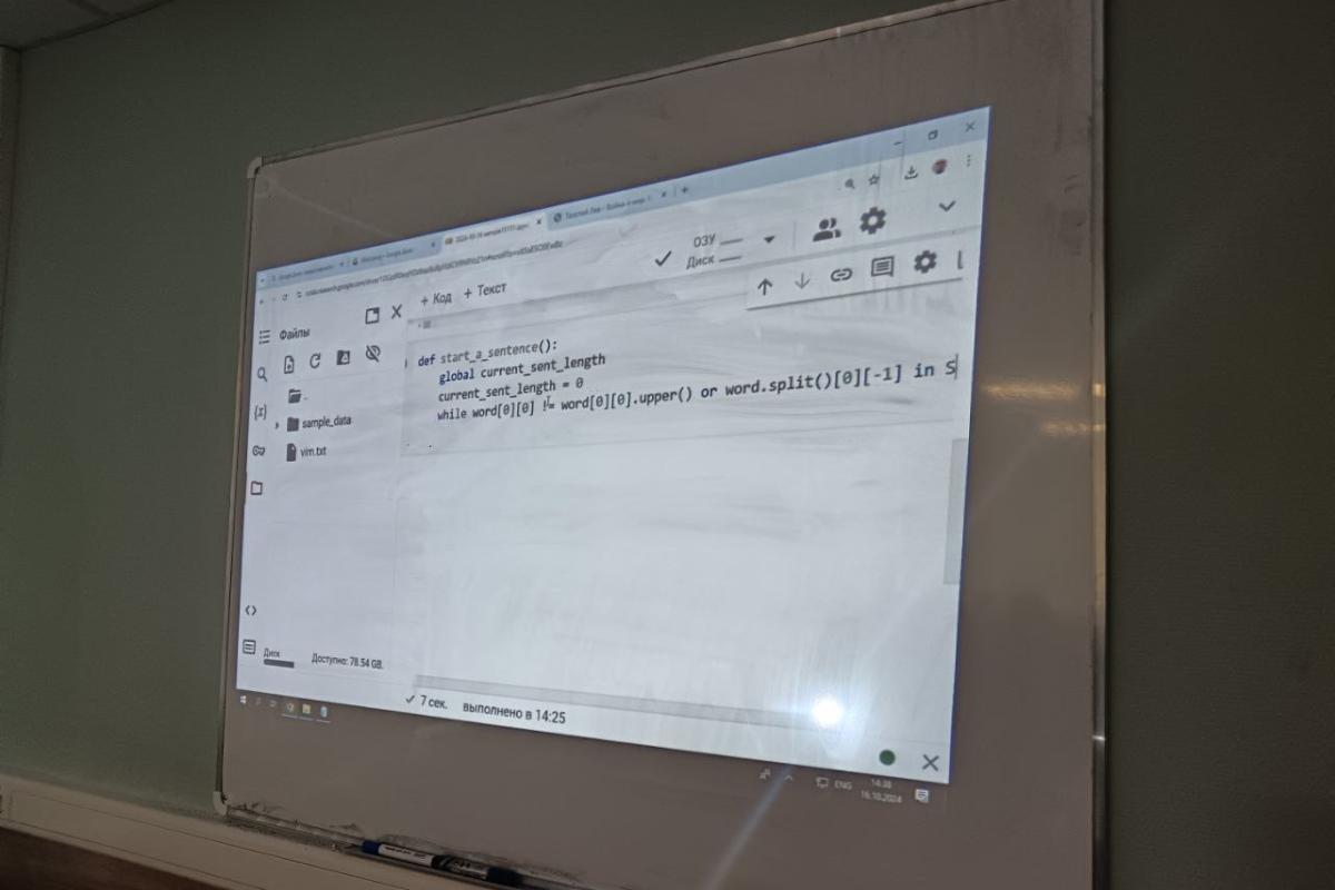 Мастер-класс провела студентка 3-го курса ОИС Александра Семененя. На встрече обсудили историю развития искусственного интеллекта, основные понятия, классификации, а также попробовали сами написать программу для обработки текста на языке Python.