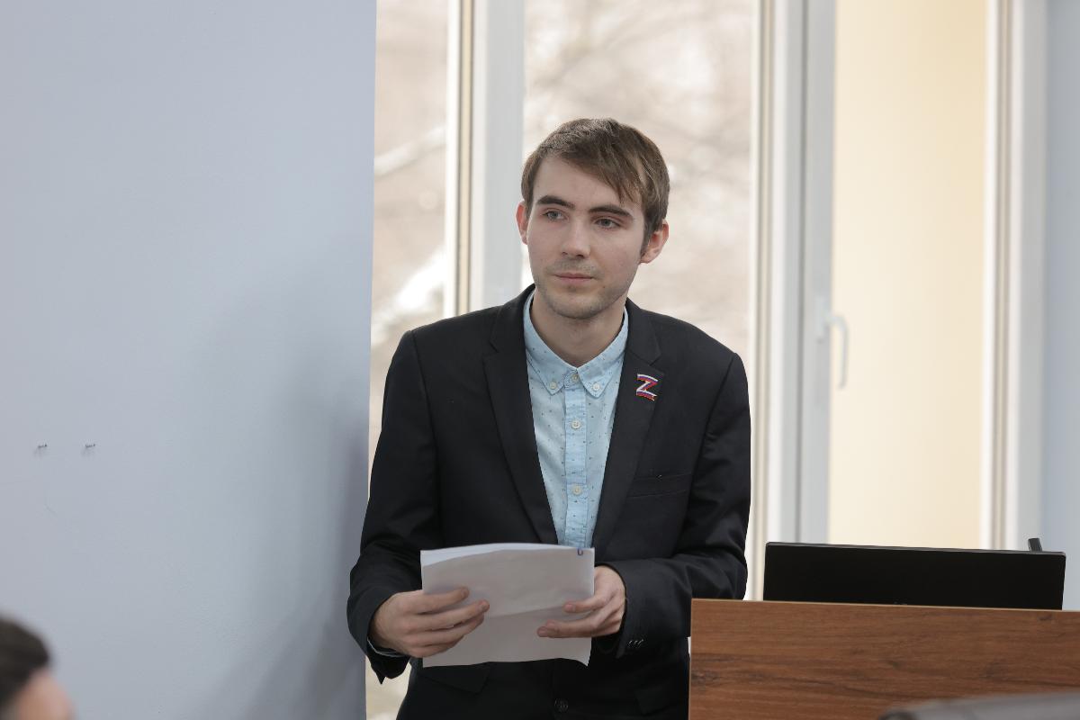 Фёдор Гудков рассказал о проекте «Русское милосердное письмо», который реализуется рабочей группой СНО «Документ. Архив. Дипломатия» РГГУ. Данный проект раскрывает исходящие из традиций отечественного письмоводства мотивы понимания, поддержки раненых и страдающих людей. Фёдор объяснил особенности этих искренних, тёплых писем, уходящих корнями в глубину веков. Он также сообщил о мероприятиях СНО по реконструкции дореволюционных канцелярий и написанию писем поддержки больным, раненым, а также обычным солдатам, которые в настоящее время отстаивают границы нашей Родины.