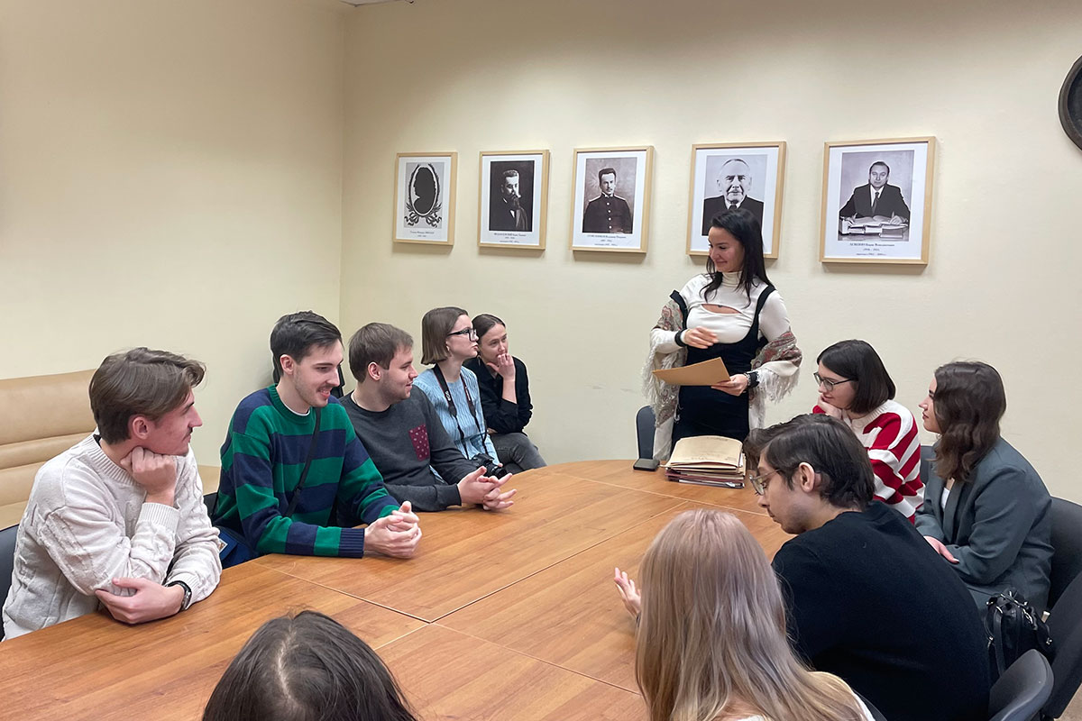 11 декабря 2024 г. в Архиве РАН под руководством кандидата исторических наук, доцента кафедры архивоведения факультета архивоведения и документоведения ИАИ РГГУ О.Е. Антоновой прошло выездное заседание студенческого научного объединения «Документальное наследие в архивоведческом познании».