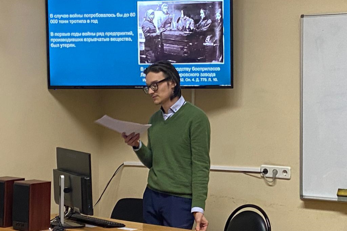 Согласно повестке дня на заседании выступили студент 2 курса исторического факультета МГУ Ильдар Гельманов. Он сделал доклад на тему ;«Роль ленд-лиза в производстве советских артиллерийских снарядов в 1942 – 1943 гг.». Докладчик проанализировал материалыстатистических отчетов поставок снарядов для фронта после официального включения СССР в программу ленд-лиза в 1942 году.