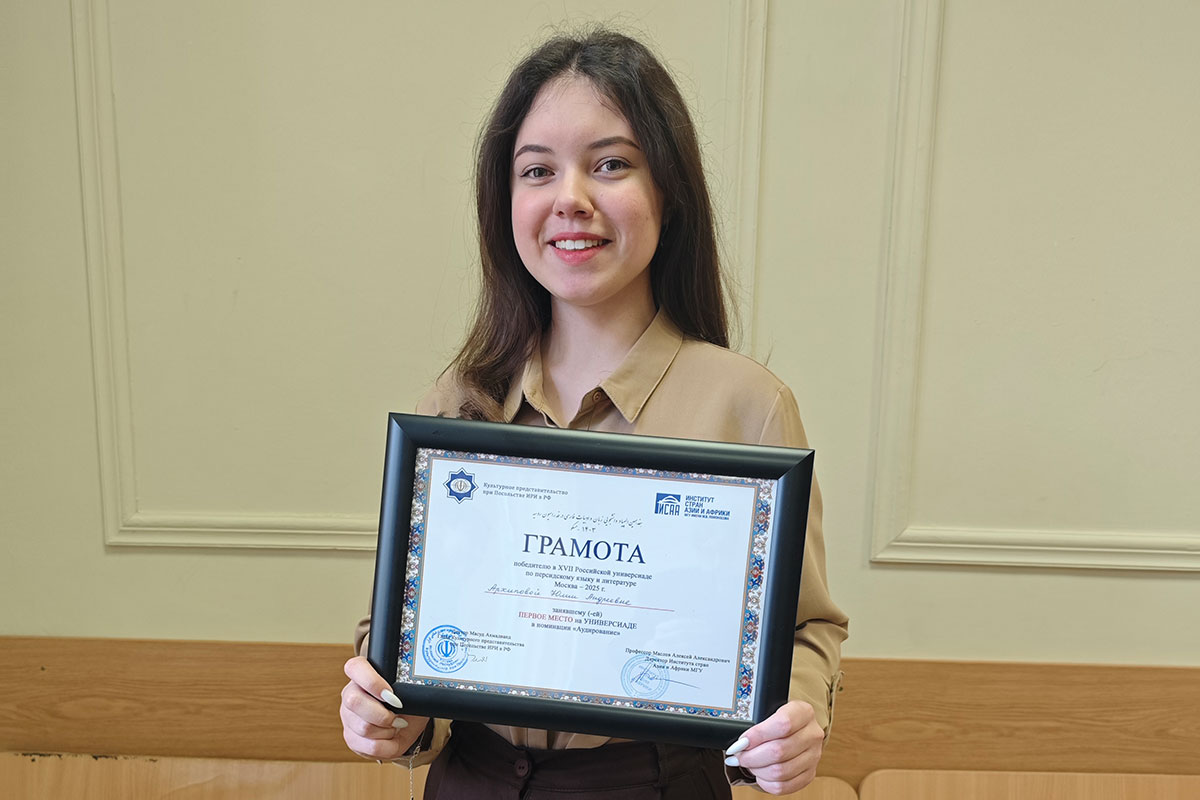 5 февраля 2025 г. в ИСАА МГУ им. М.В. Ломоносова под эгидой Культурного представительства при Посольстве Ирана в России прошла XVII Всероссийская универсиада по персидскому языку и литературе. В одной из номинаций победительницей стала студентка РГГУ Юлия Архипова.