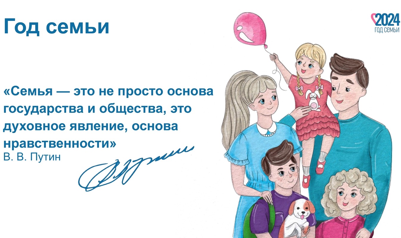 22 ноября 2023 года Президент РФ Владимир Путин подписал Указ, объявляющий 2024 год Годом семьи.
