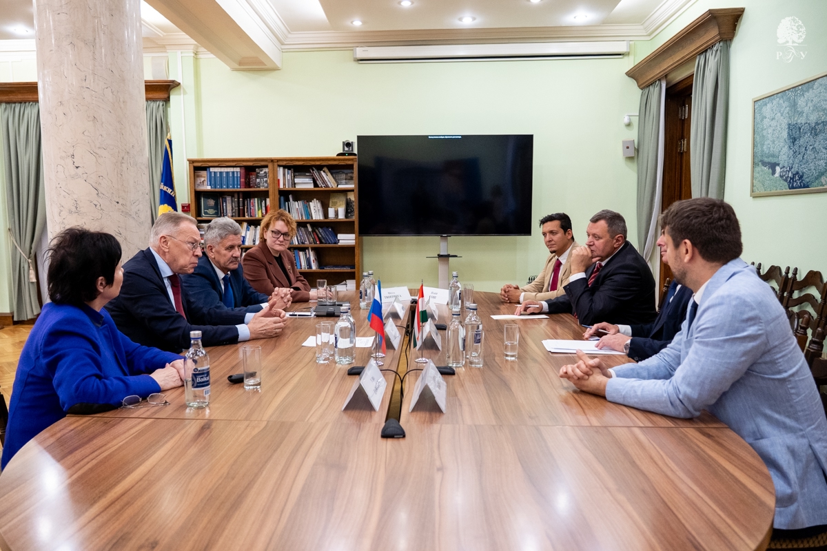 Встреча с венгерскими коллегами состоялась в Российском государственном гуманитарном университете с участием и.о. проректора по международному сотрудничеству Веры Заботкиной, директора Департамента международного сотрудничества Ольги Трофимовой и директора института международных отношений и политических наук Василия Христофорова. Венгерскую делегацию возглавил стратегический директор Сабольч Шемерей, которого сопровождали начальник Международного офиса Хабиб Кохи, старший советник ректора Эрнё Кешкень и атташе по образованию Посольства Венгрии в Российской Федерации Андраш Марфи.