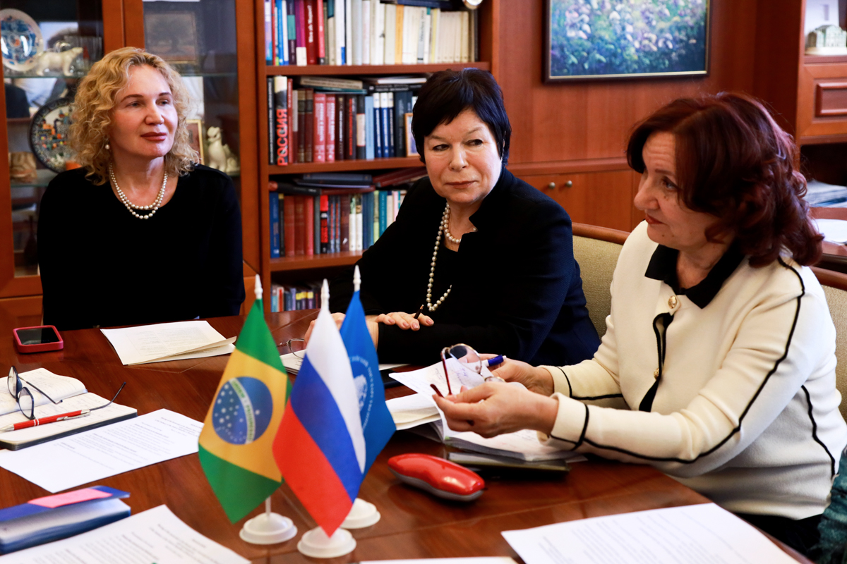 Во встрече приняли участие первый проректор – проректор по научной работе Ольга Павленко, и.о. проректора по международному сотрудничеству Вера Заботкина, начальник Управления международных связей Ольга Трофимова, директор Международного российско-бразильского центра РГГУ Людмила Батурина, заместитель декана по научной работе ФМОиЗР Виктория Журавлева и сотрудник Международного российско-бразильского центра Дарья Прохорова.