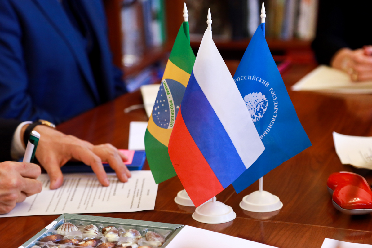 14 марта руководство Российского государственного гуманитарного университета встретилось с представителями Посольства Федеративной Республики Бразилия в Российской Федерации с целью обсуждения совместных проектов РГГУ и бразильских вузов.