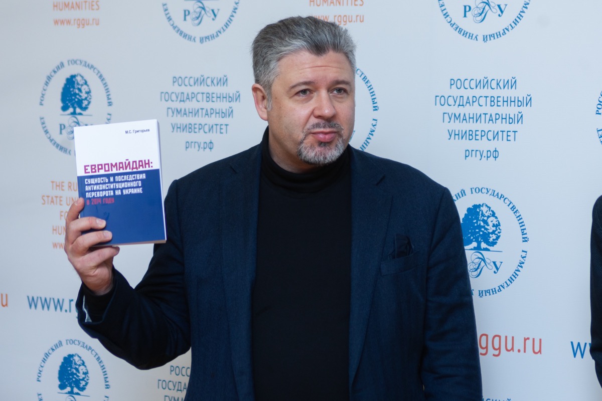 В ходе мероприятия была представлена книга кандидата политических наук, члена Общественной палаты РФ, директора Фонда исследования проблем демократии Максима Григорьева «Евромайдан: сущность и последствия антиконституционного переворота на Украине в 2014 году». Максим Григорьев неоднократно бывал в местах ведения боевых действий. Он рассказал участникам встречи о многочисленных военных преступлениях портив мирного населения, зафиксированных в рамках работы Международного общественного трибунала по преступлениям украинских неонацистов и их пособников.