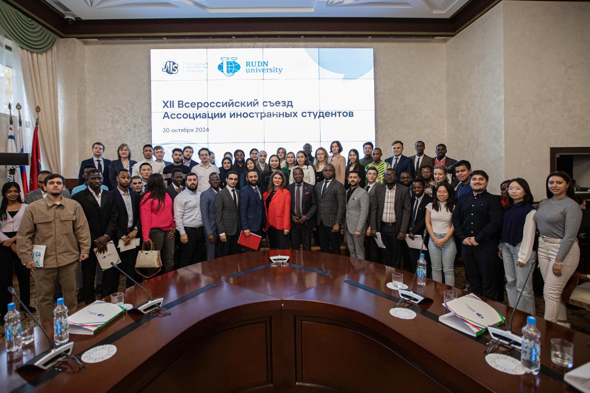 30 октября 2024 г. на базе Российского университета дружбы народов имени Патриса Лумумбы состоялся XII Всероссийский съезд Ассоциации иностранных студентов (АИС). РГГУ представляли заместитель директора Департамента международного сотрудничества РГГУ Наталия Пахомова, начальник отдела по работе с иностранными обучающимися и выпускниками ДМС Екатерина Сальникова и активисты АИС РГГУ: Парвина Ахмадзода и Закия Ходжаева, студентки 2-го курса Института лингвистики, а также Шукрона Давлатзода, студентка 2-го курса факультета международных отношений, политологии и зарубежного регионоведения.