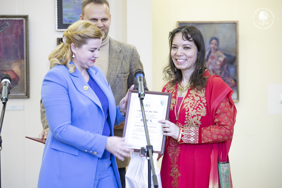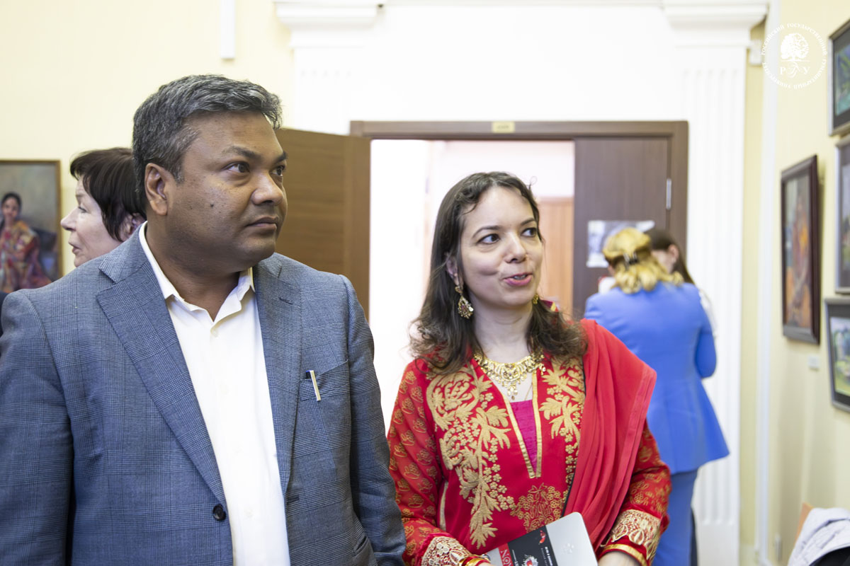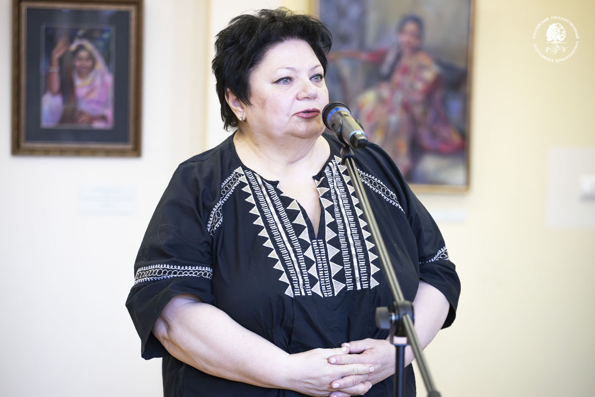 «Прежде всего я хочу поблагодарить директора Музейного центра РГГУ Ирину Баканову, которая всегда на высочайшем уровне организует великолепные выставки. Это значимое событие в жизни нашего университета. Выставка даёт возможность почувствовать соединение двух культур — России и Индии, увидеть их гармонию и взаимное влияние. Это действительно уникальный художественный опыт, который объединяет страны на уровне искусства и человеческих чувств», — отметила и.о. проректора по международному сотрудничеству РГГУ Вера Заботкина.