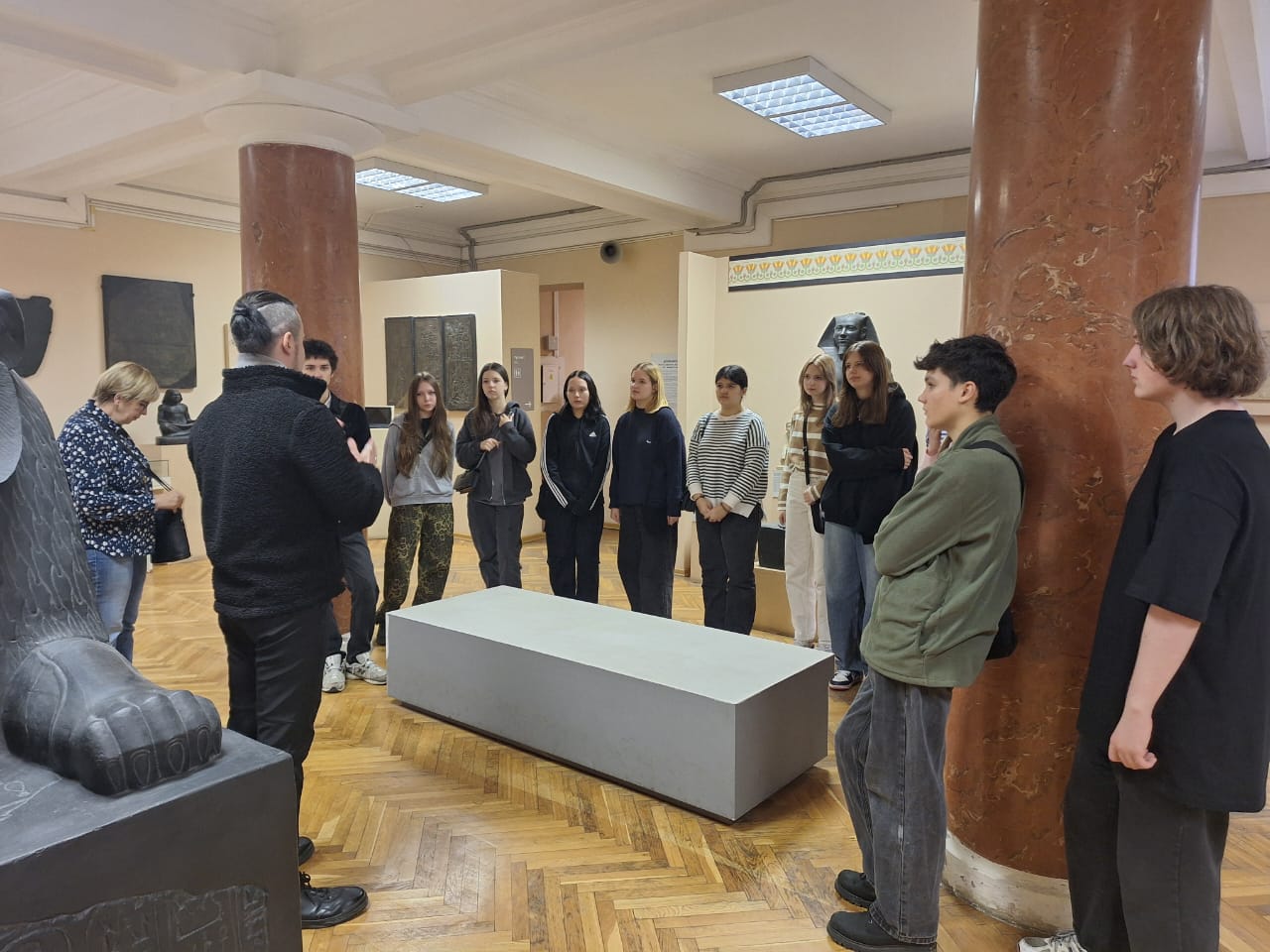 Десятиклассники с удовольствием побывали на экскурсии в Учебном художественном музее им. И.В. Цветаева, который является отделом Музея изобразительных искусств им. А.С. Пушкина и составной частью Музейного центра Российского государственного гуманитарного университета. В семи залах музея представлено 750 слепков и копий с памятников искусства Древнего Египта и Передней Азии, Древней Греции, Рима, европейского средневековья и эпохи Возрождения, хранящихся в главных музеях Парижа, Лондона, Берлина, Каира, Санкт-Петербурга, а также во многих музеях Италии, Германии, Нидерландов и др. Экспозиция знакомила школьников с основными этапами развития мирового искусства с древнейших времен до XVI века на примере наиболее выдающихся памятников.