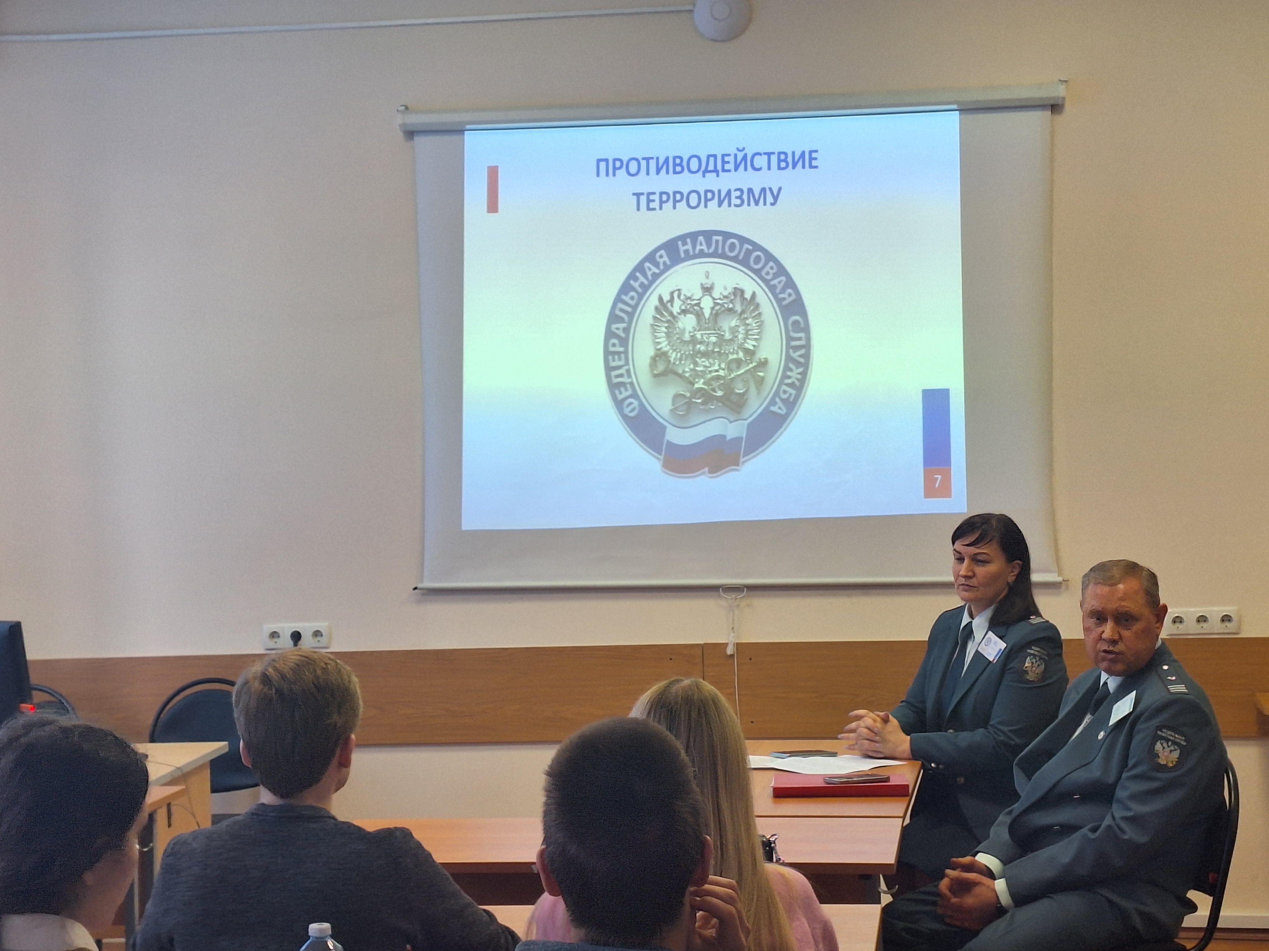 Главный государственный налоговый инспектор Татьяна Анатольевна Соклакова рассказала студентам о терроризме как сложном социально-политическом и криминальном явление, которое обусловлено внутренними и внешними противоречиями общественного развития различных стран. Где терроризм представляет собой многоплановую угрозу для жизненно важных интересов личности, общества и государства, одну из наиболее опасных разновидностей политического экстремизма в глобальном и региональном масштабах.