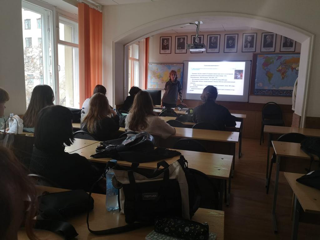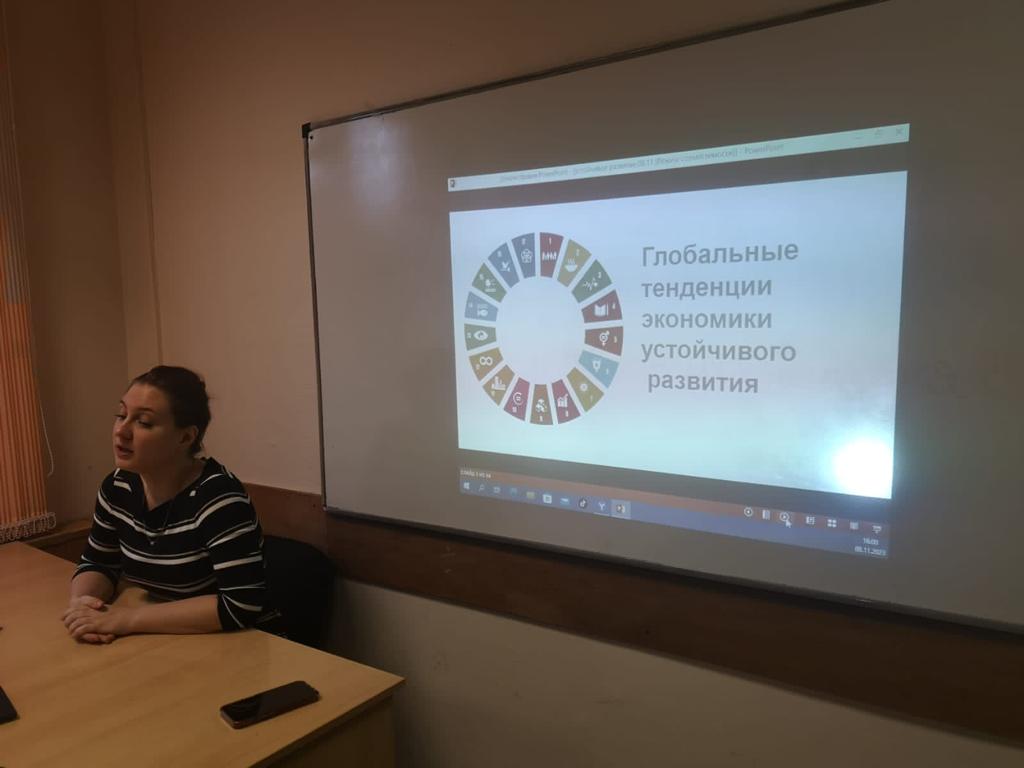 Особый интерес среди обучающихся вызвал краткий обзор современных глобальных тенденций развития устойчивой экономики. Среди выделенных тенденций отмечены следующие: преобладание экономических интересов государств над политическими разногласиями, становление многополярности мира, формирование новых энергетических трендов на фоне структурной трансформации энергетических балансов, качественные изменения в сфере образования и др.