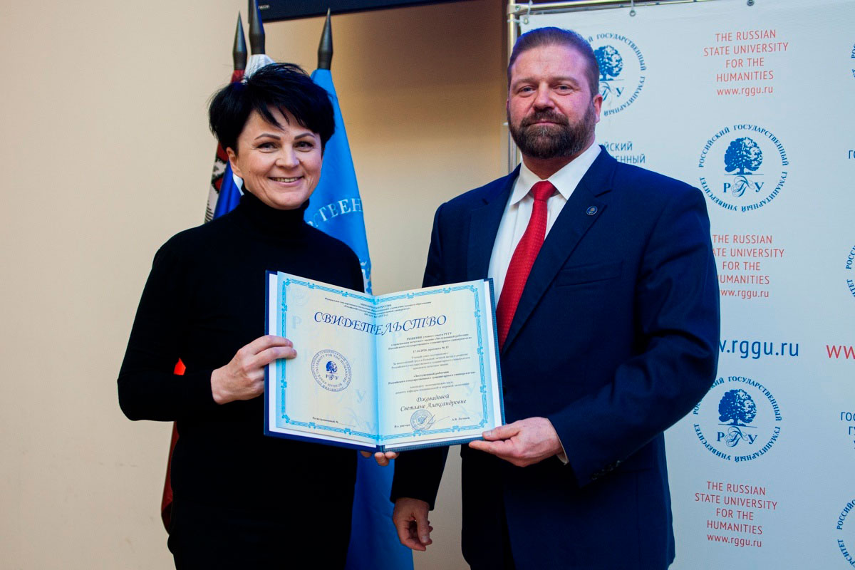 28 января 2025 г. в Российском государственном гуманитарном университете состоялось заседание Ученого совета, в ходе которого преподавателям экономического факультета были вручены свидетельства о присвоении почетных званий работникам вуза.