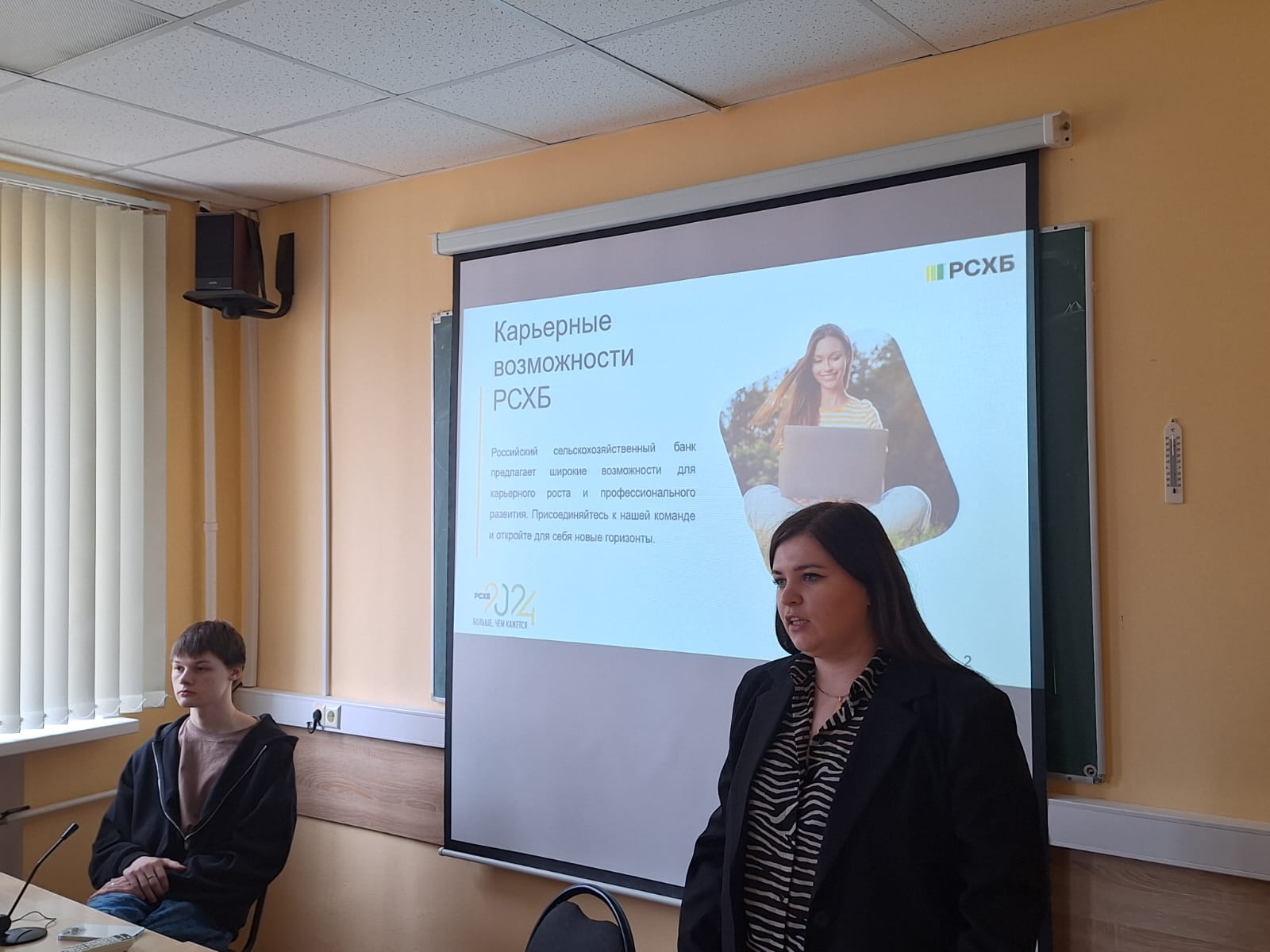28 марта Маргарита Самсонова (менеджер по персоналу) поговорила об условиях приема на работу в Россельхозбанк со студентами 4 курса направления «Экономика бизнеса» экономического факультета, а также со студентами 3 курса Гуманитарного колледжа по направлению подготовки «Финансы» на тему «Карьерные возможности РСХБ».