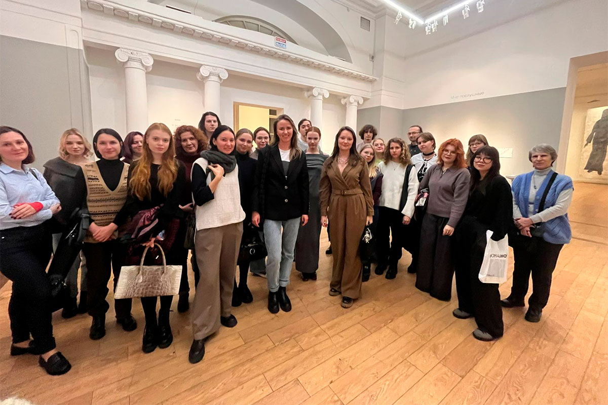 21 ноября студенты факультета истории искусства под руководством Карцевой Е.А., руководителя образовательной программы «Арт-менеджмент и галерейное дело», посетили выставку и провели встречу с сотрудниками выставочного отдела, среди которых были и выпускники университета. Специалисты поделились с молодыми людьми информацией о внутреннем устройстве музея, подробно описали процесс взаимодействия разных отделов при подготовке выставок, а также рассказали о возникающих сложностях и этапах этого процесса. Особую ценность представляла информация о карьерных перспективах в сфере культуры. Они также ответили на вопросы студентов, касающиеся техники выполнения работ, материалов, используемых художниками, и их влияния на восприятие зрителем.