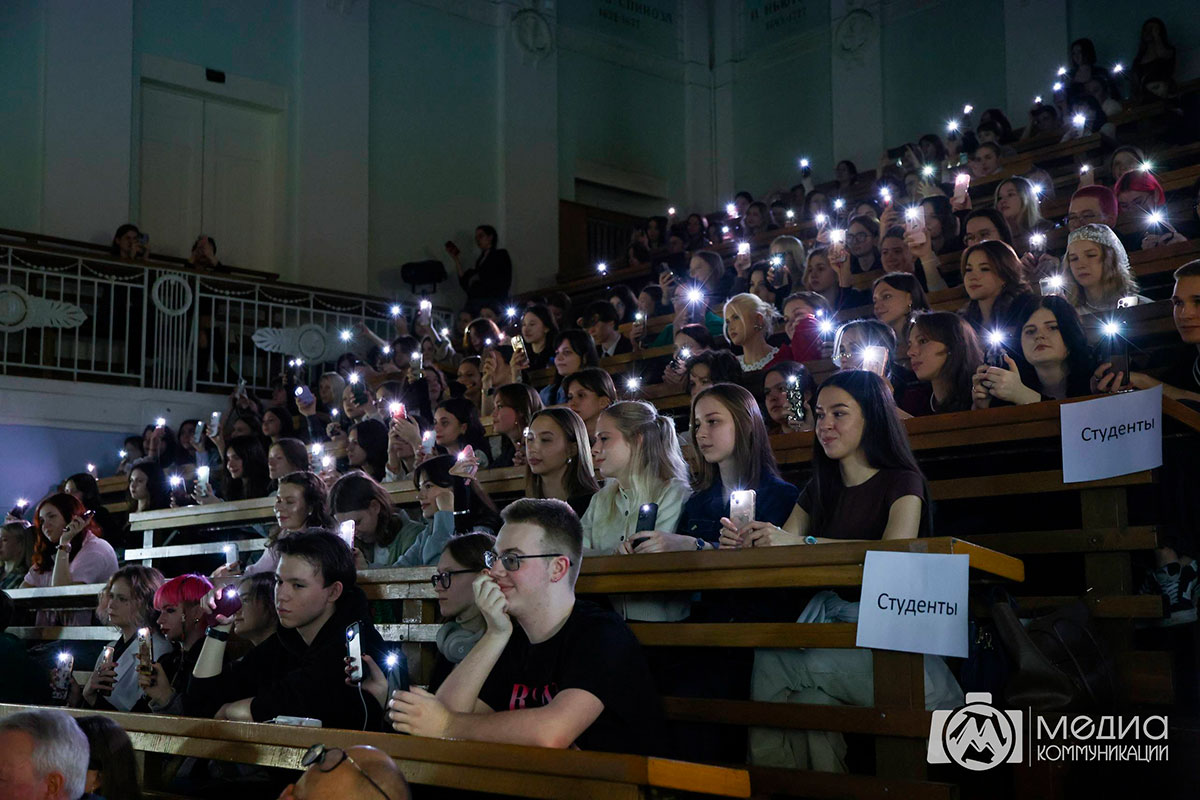 Программа открылась музыкальным приветствием, которое задало тон всему вечеру. С приветственным словом к собравшимся обратился декан факультета маркетинга и рекламы Алан Лазаревич Абаев, рассказавший об истории создания факультета медиакоммуникаций.